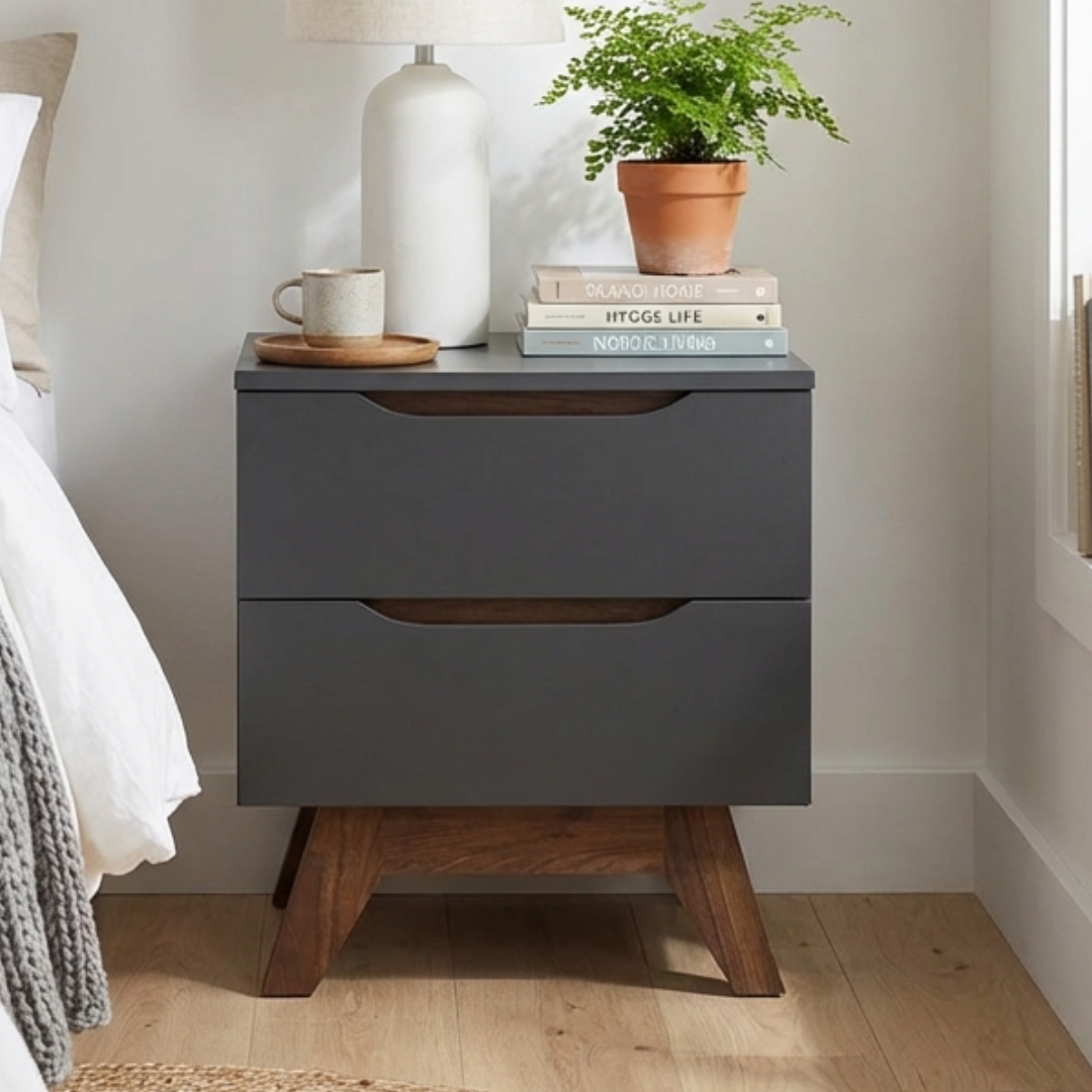 HOLLYWOOD 60CM Solid Wood Bedside Table-Cappuccino