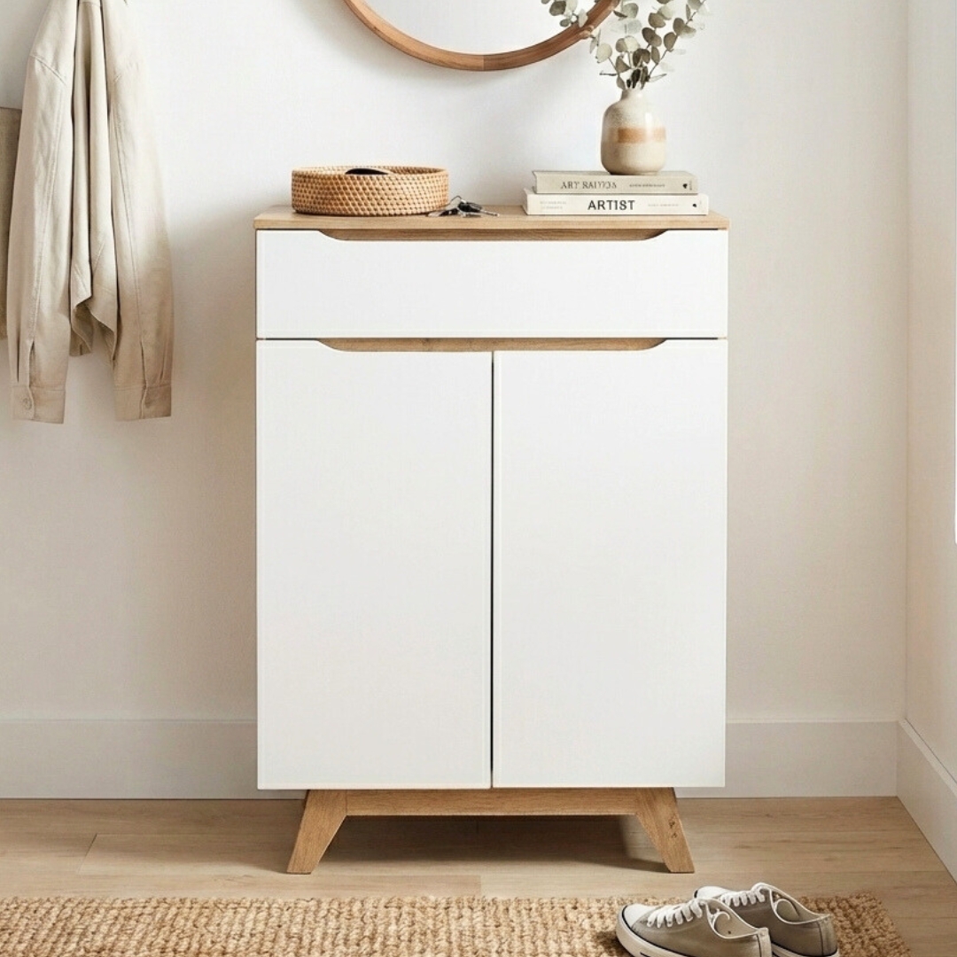 OLIVER 2 Door Shoe Cabinet-Oak+White