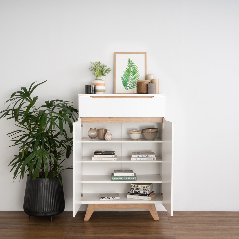 ENYA 4 Door Shoe Cabinet-Oak+White