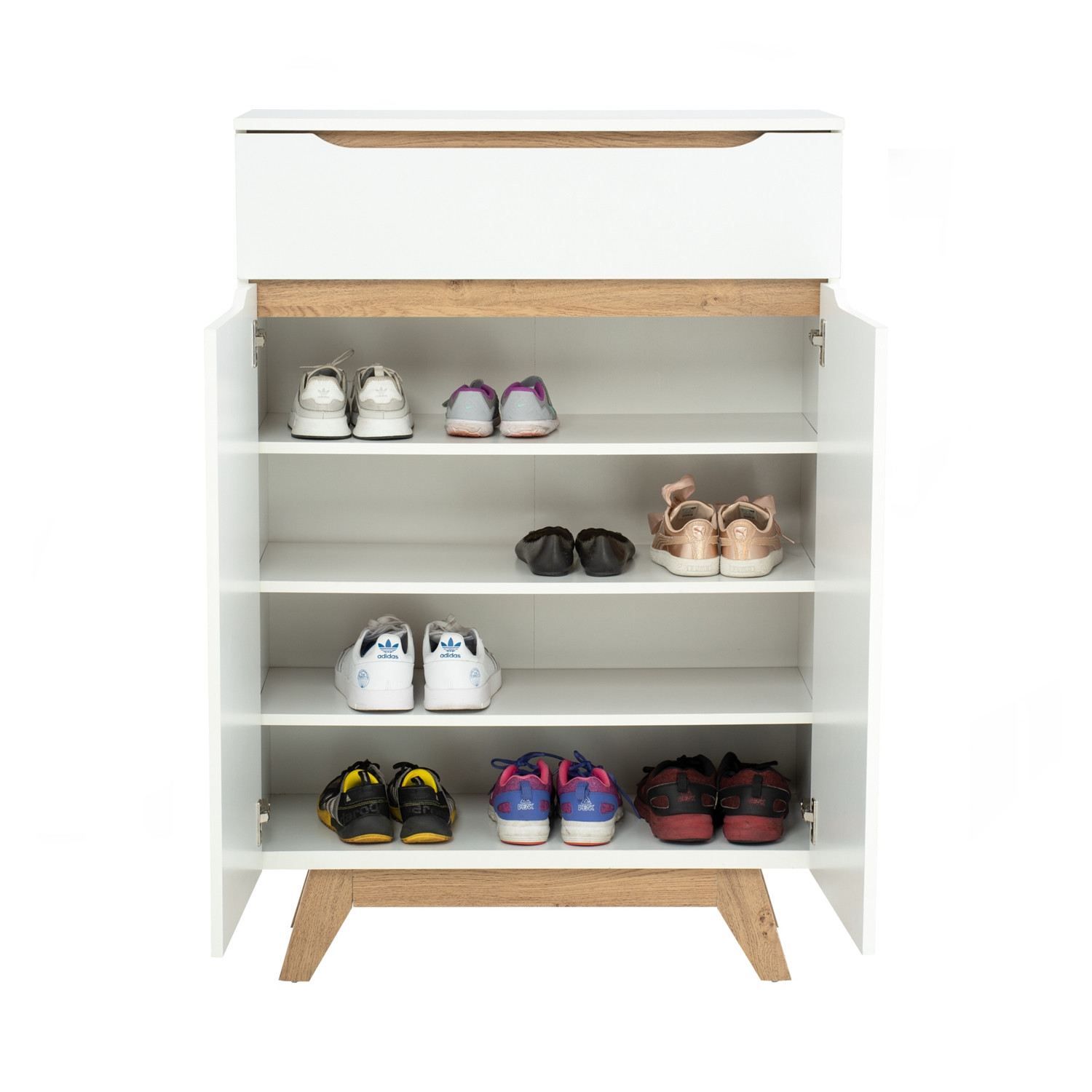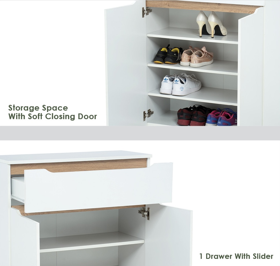 ENYA 4 Door Shoe Cabinet-Oak+White