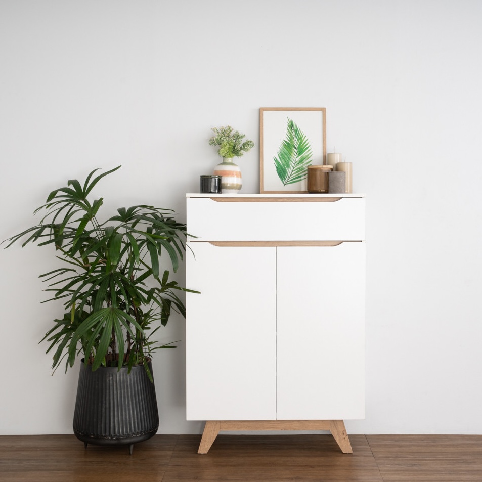 OLIVER 2 Door Shoe Cabinet-Oak+White