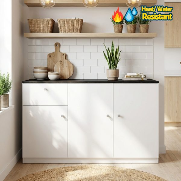 Upgrade your home storage with the MARIE 120cm Sideboard, designed for both functionality and style. Crafted from durable particle board with a sturdy 25mm thick tabletop, this sideboard features two doors and three drawers, providing ample space for organizing essentials. Perfect for dining rooms, living areas, or entryways, the MARIE sideboard offers versatile storage solutions with a clean, modern look. Its sleek design makes it easy to blend into any decor while keeping your space tidy and organized.