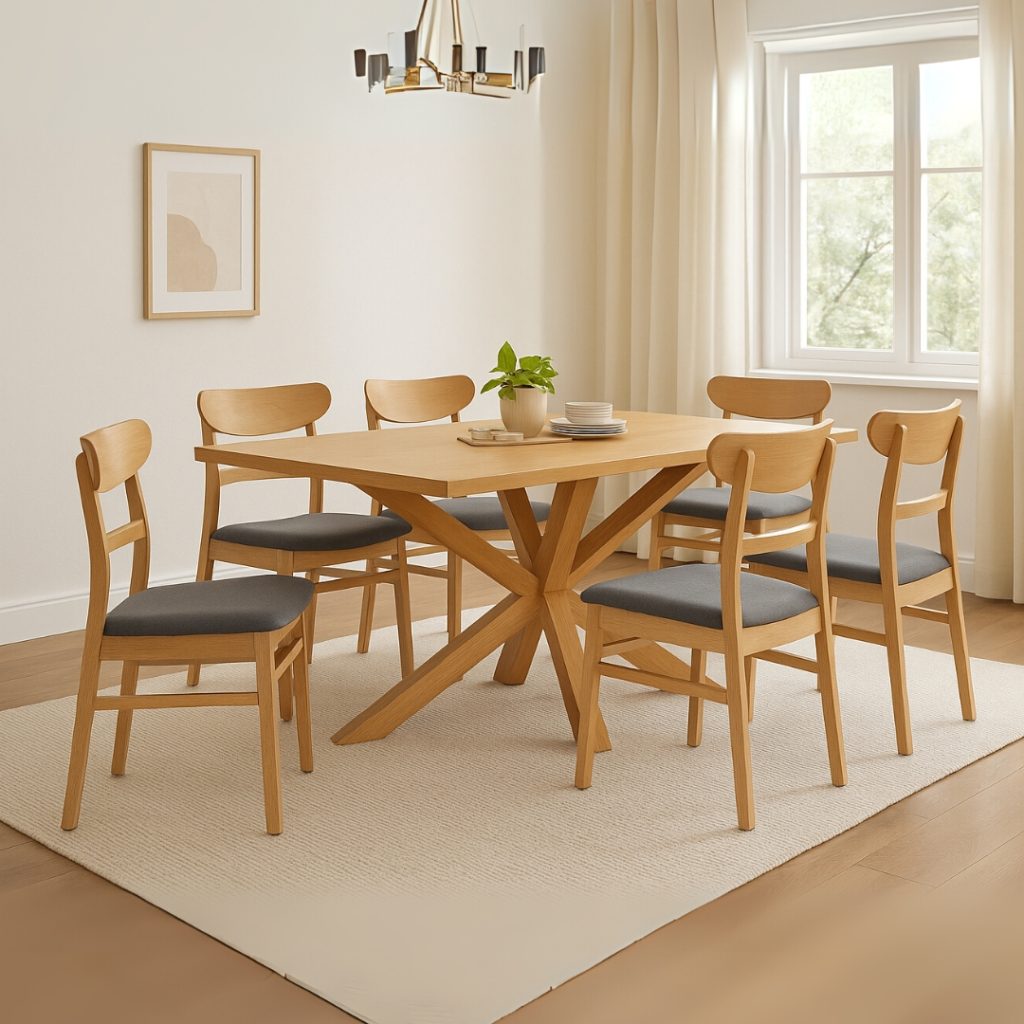 - MARLU 180cm 6 Seater Dining Set-Natural