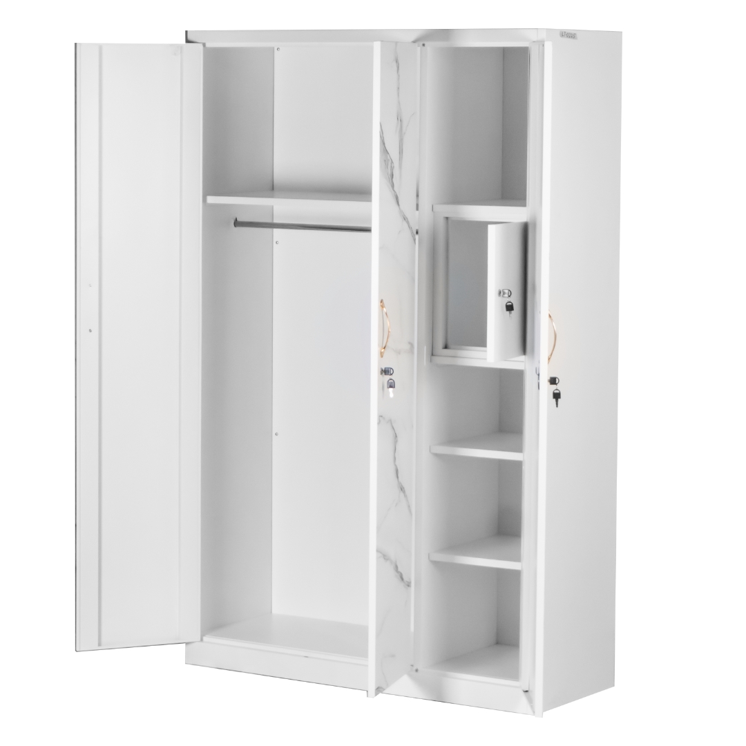 - MAVIS 3 Door Metal Wardrobe-White Marble