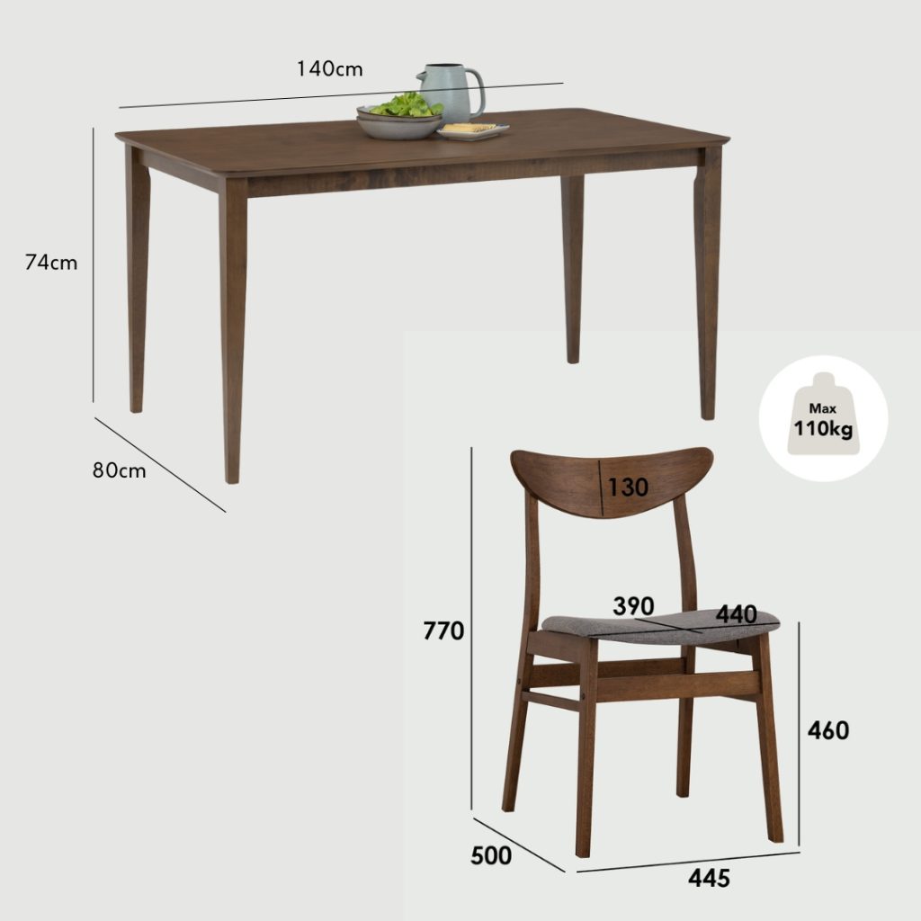 MEISI 4 Seater 140cm Dining Set-Walnut