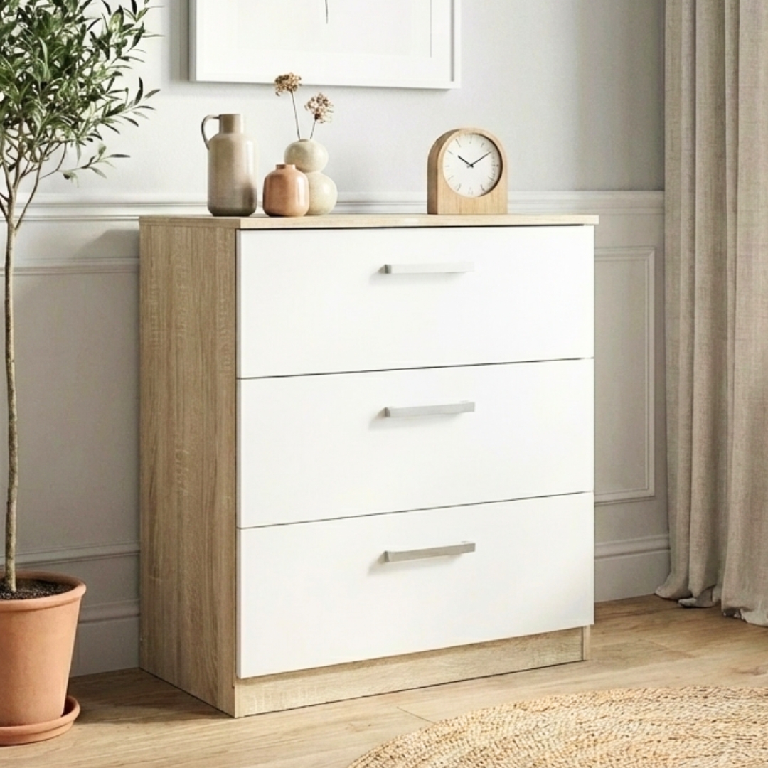 [Premium Grade ] VESTA 4 Drawer Chest-Oak+White