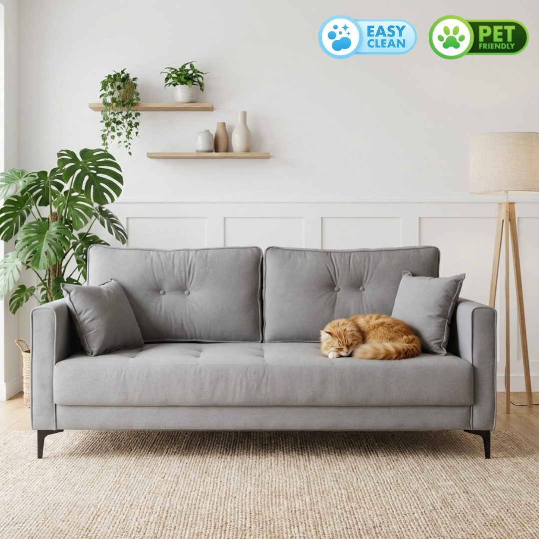 - MERLINDA 3 Seater Pet Friendly Sofa-Grey