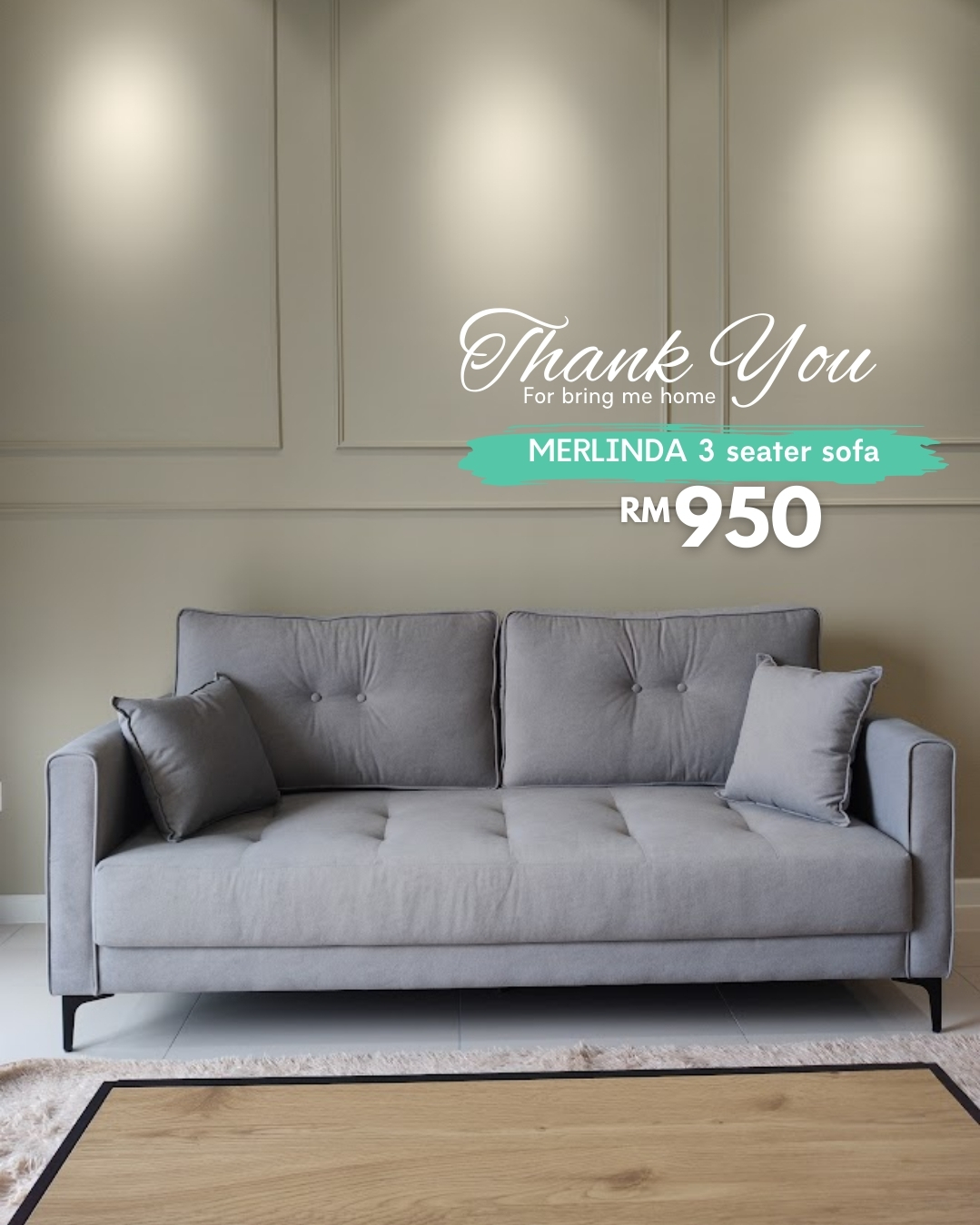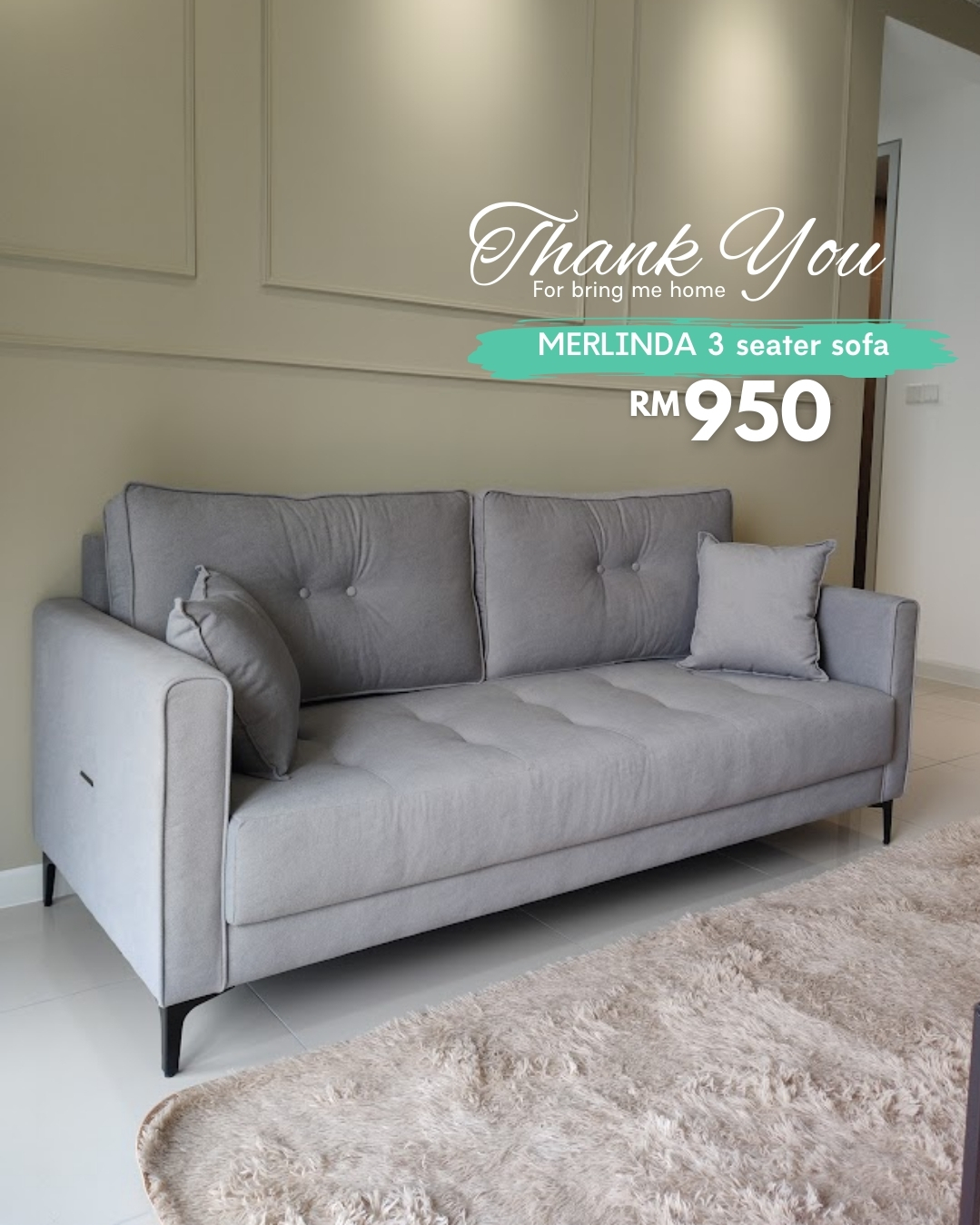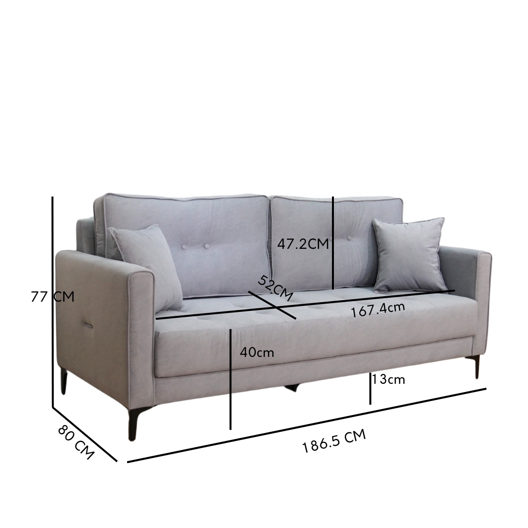 Sofa 3 Tempat Duduk MERLINDA direka untuk keselesaan dan gaya moden. Dibalut fabrik mesra haiwan peliharaan dengan fungsi kalis air, sesuai untuk rumah yang aktif. Dilengkapi dua bantal hiasan, dan kusyen sandaran boleh ditukar antara dua reka bentuk untuk tampilan berbeza. Praktikal, bergaya dan fleksibel untuk ruang tamu anda.