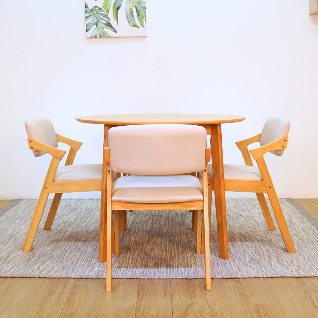 MIDNA 4 Seater Round Dining Set-Cream Cushion
