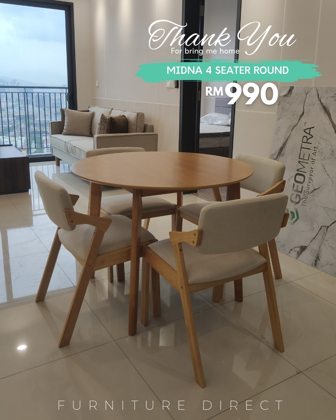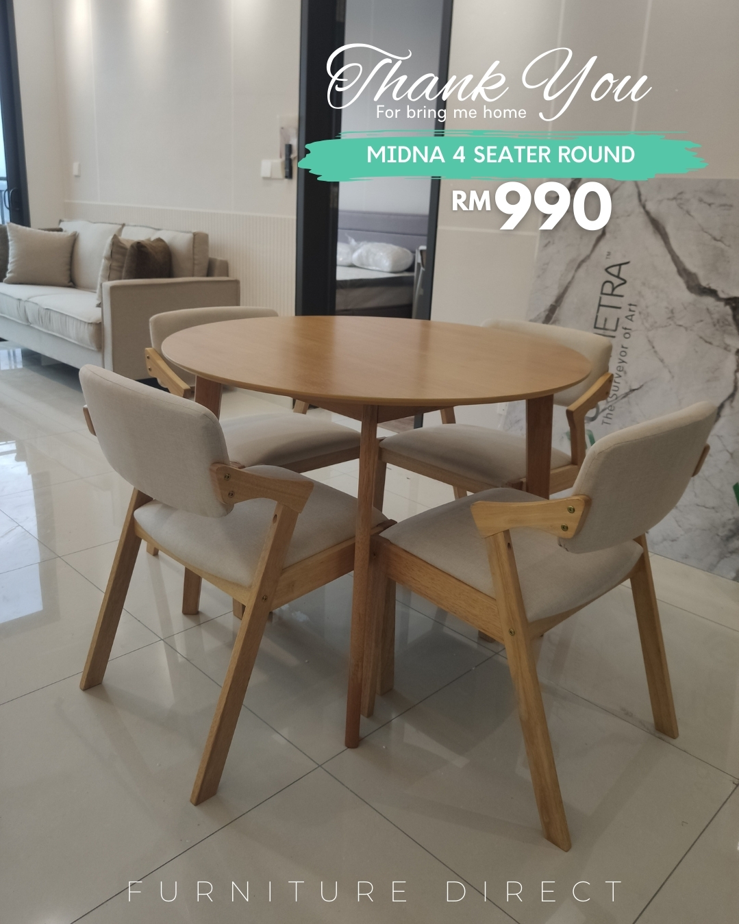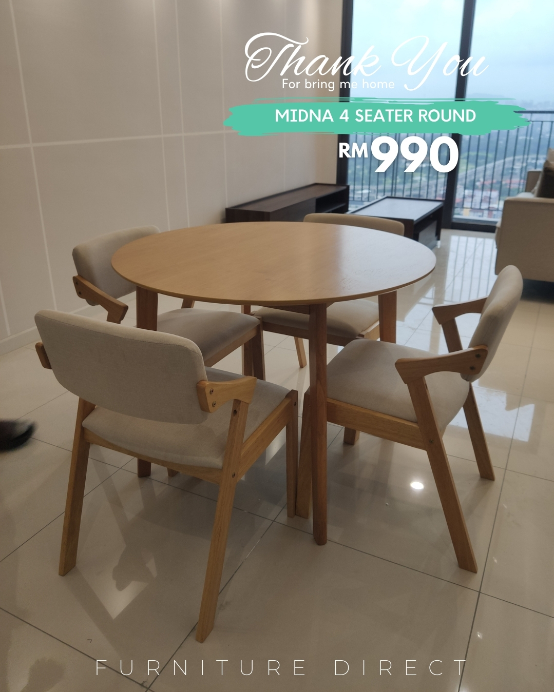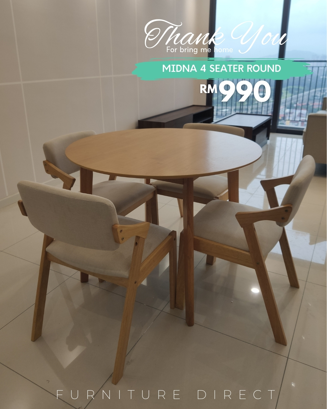 - MIDNA 4 Seater Round Dining Set-Cream Cushion