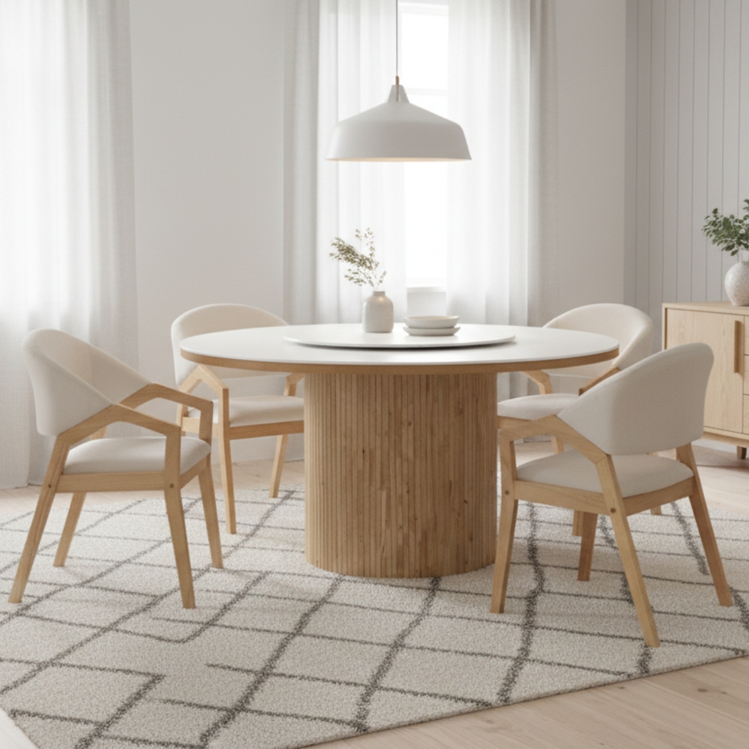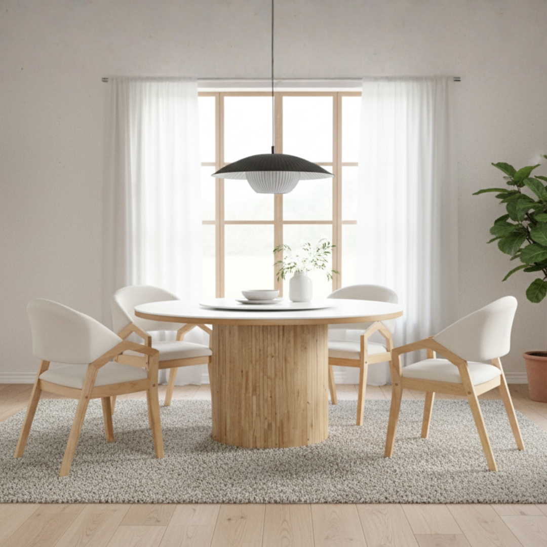 MILDREN D150cm Sintered Stone 4 Seater Dining Set-Natural