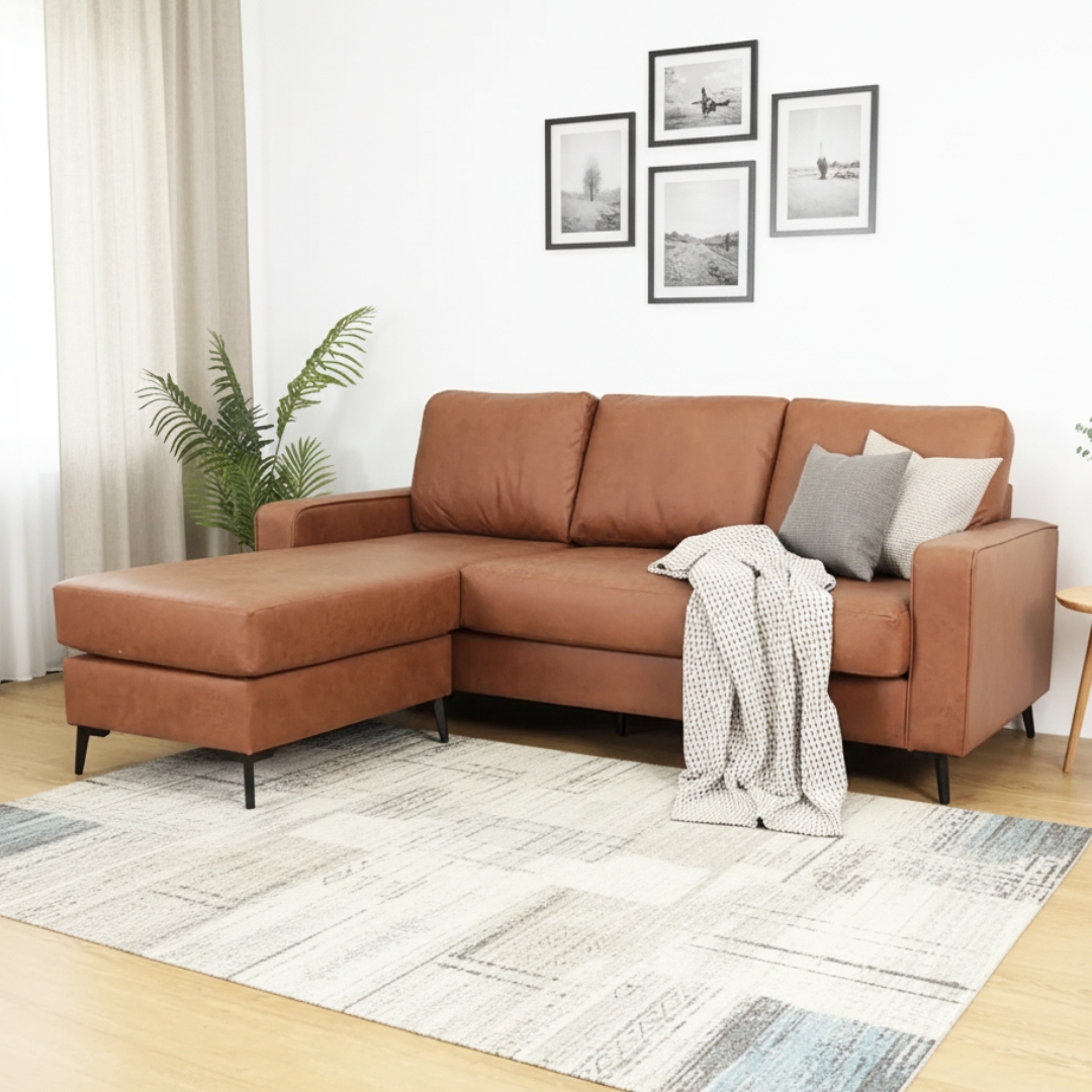 介绍MIRZA L型沙发,由合成面料制成,具有复古皮革外观和坚固的金属腿。这款多功能沙发具有可逆的L型座椅,允许您根据空间进行定制。非常适合任何生活区,MIRZA沙发结合了风格和功能,提供时尚舒适的座椅解决方案。用这款时尚实用的L型沙发提升您的家居。