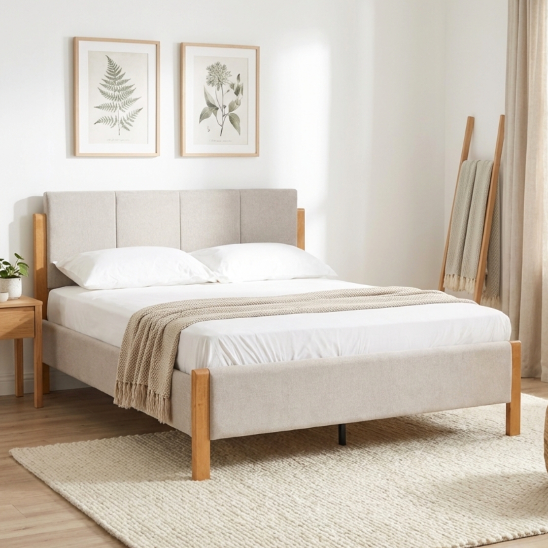 - Mayer Queen bed on Black colour leg, Light Grey colour Savana fabric