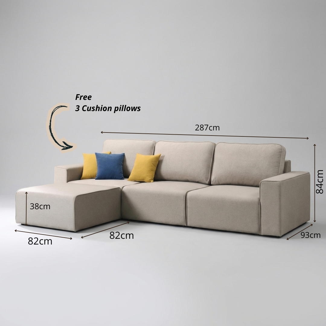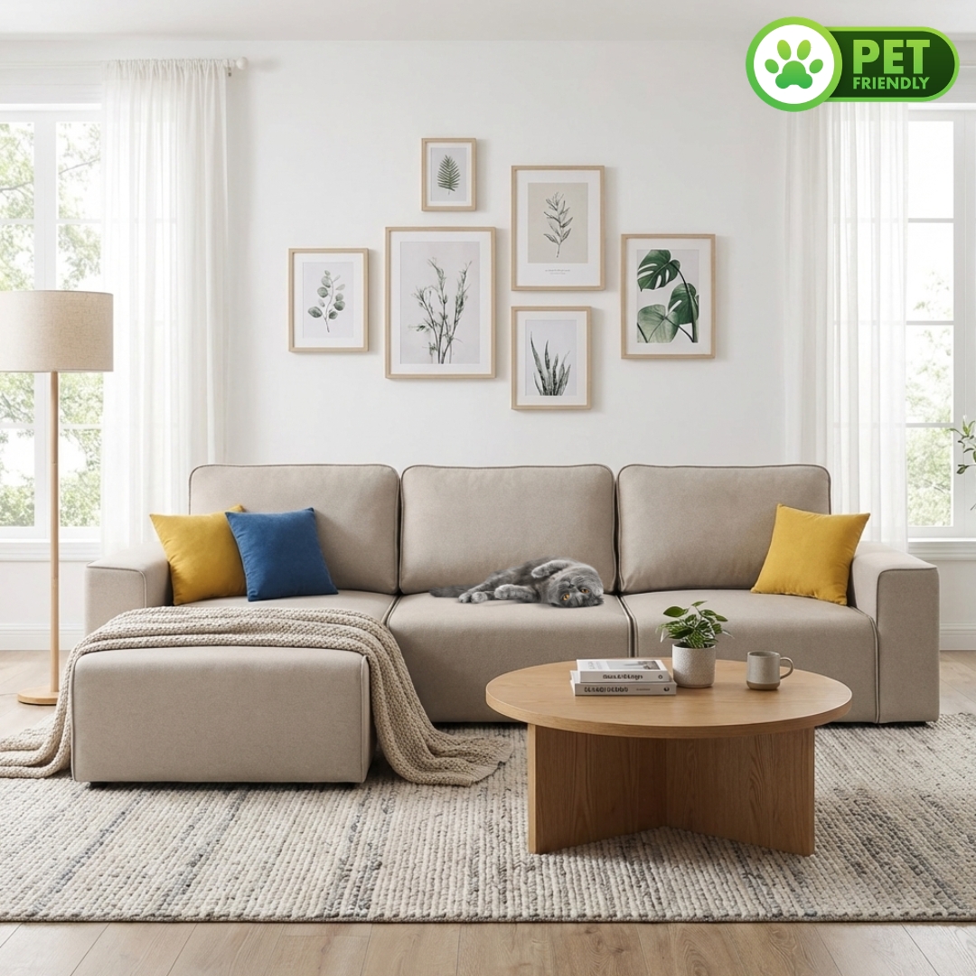 - MOLISE 3 Seater Pet Friendly Modular L Shaped Sofa-Sand