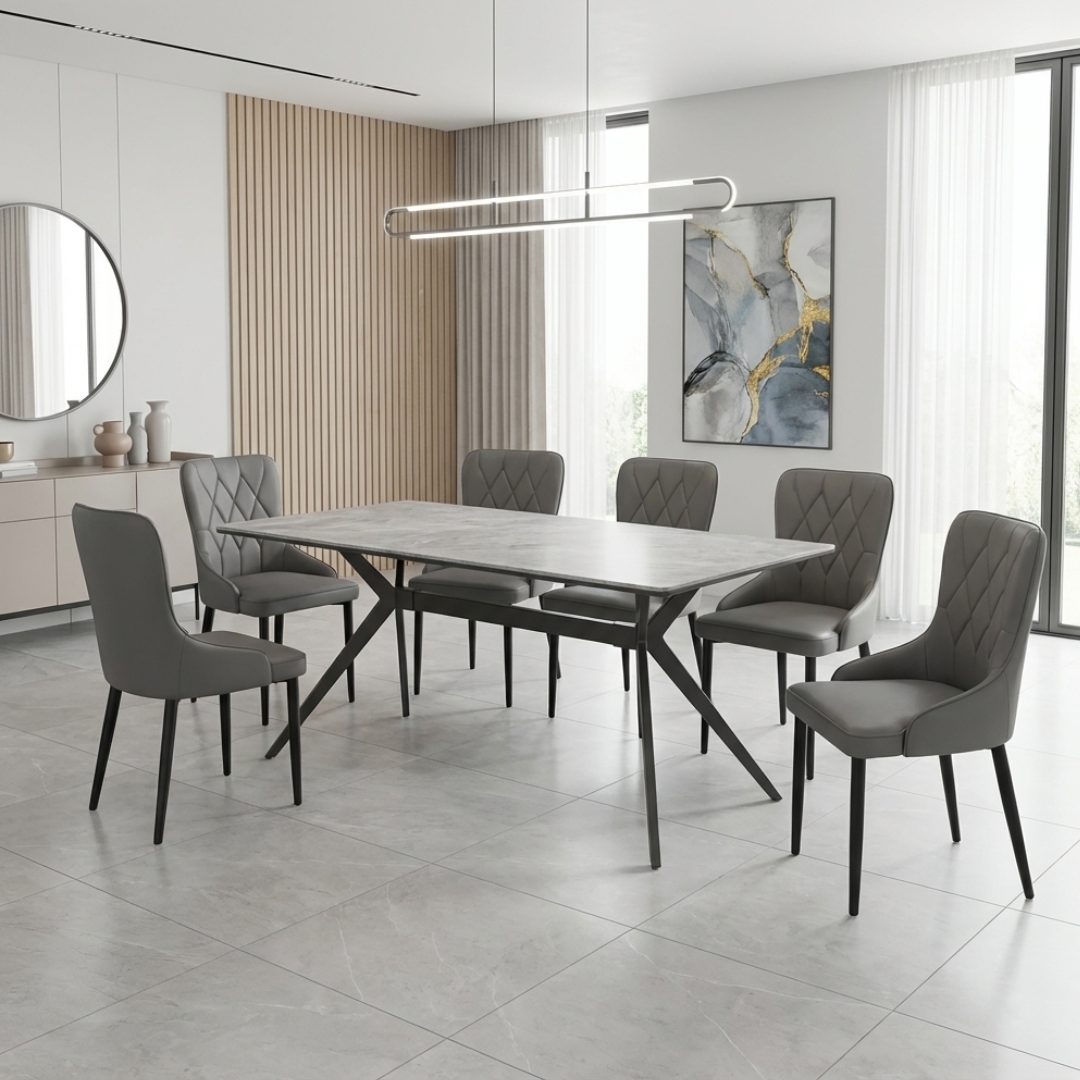 MONTAUK 6 Seater Sintered Stone Dining Set-Grey