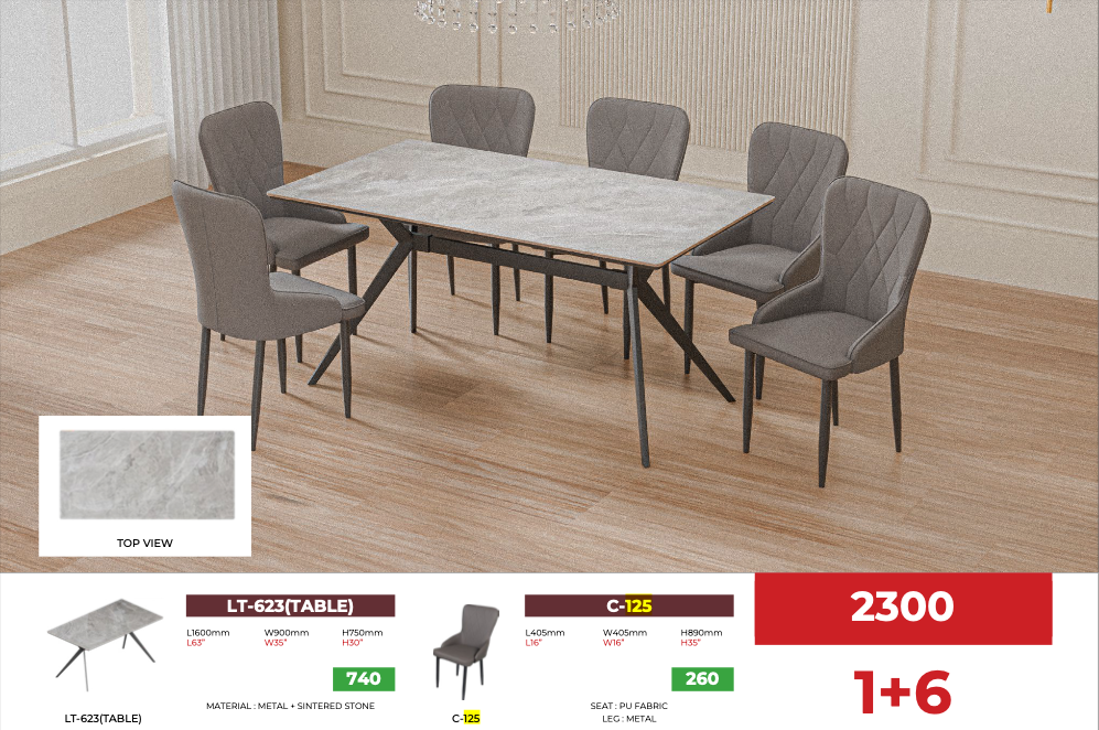 LENORE 6 Seater Dining Set-Black PU