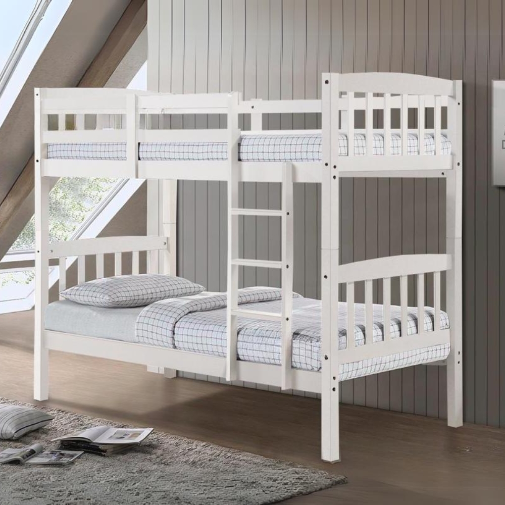 MONTROS Single Size Bunk Bed Double Decker-Pearl White