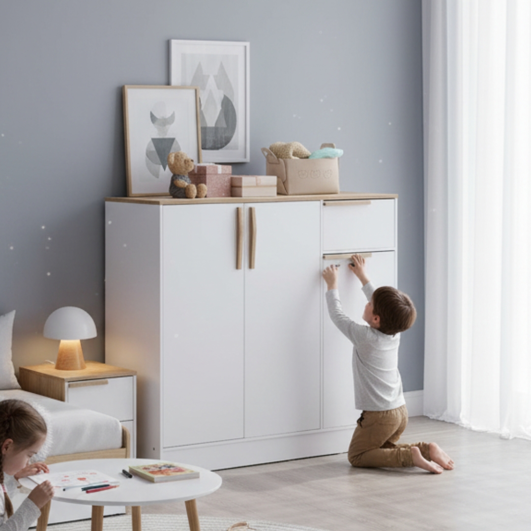 BRAY 3 Doors Kids Storage Cabinet-Cappuccino