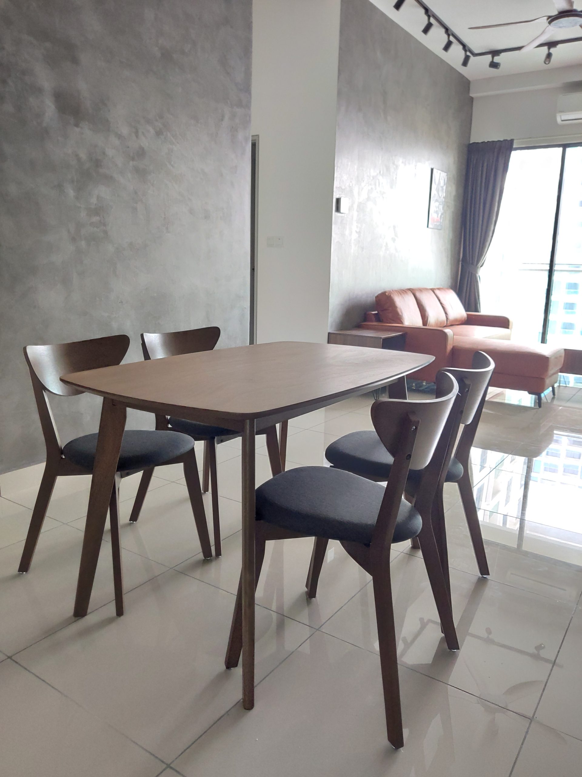 The NAIDA 4-Seater Dining Set features a rich walnut finish that brings warmth and sophistication to your dining area.