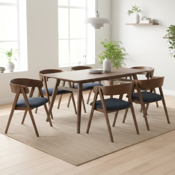 LOFTI 6 Seater Solid Bent Wood Dining Set-Cocoa