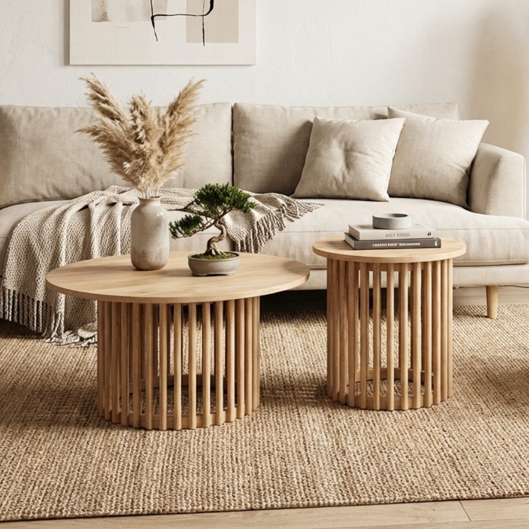 Introducing the NIKO Solid Wood Round Nesting Table Series — a perfect blend of style and function. Crafted from full solid wood, this set includes a large coffee table and a small side table, each sold separately for flexible pairing. The round tabletop and rounded spindle base create a warm Japandi-inspired aesthetic that fits effortlessly into any modern living space. A beautiful statement piece with natural charm.