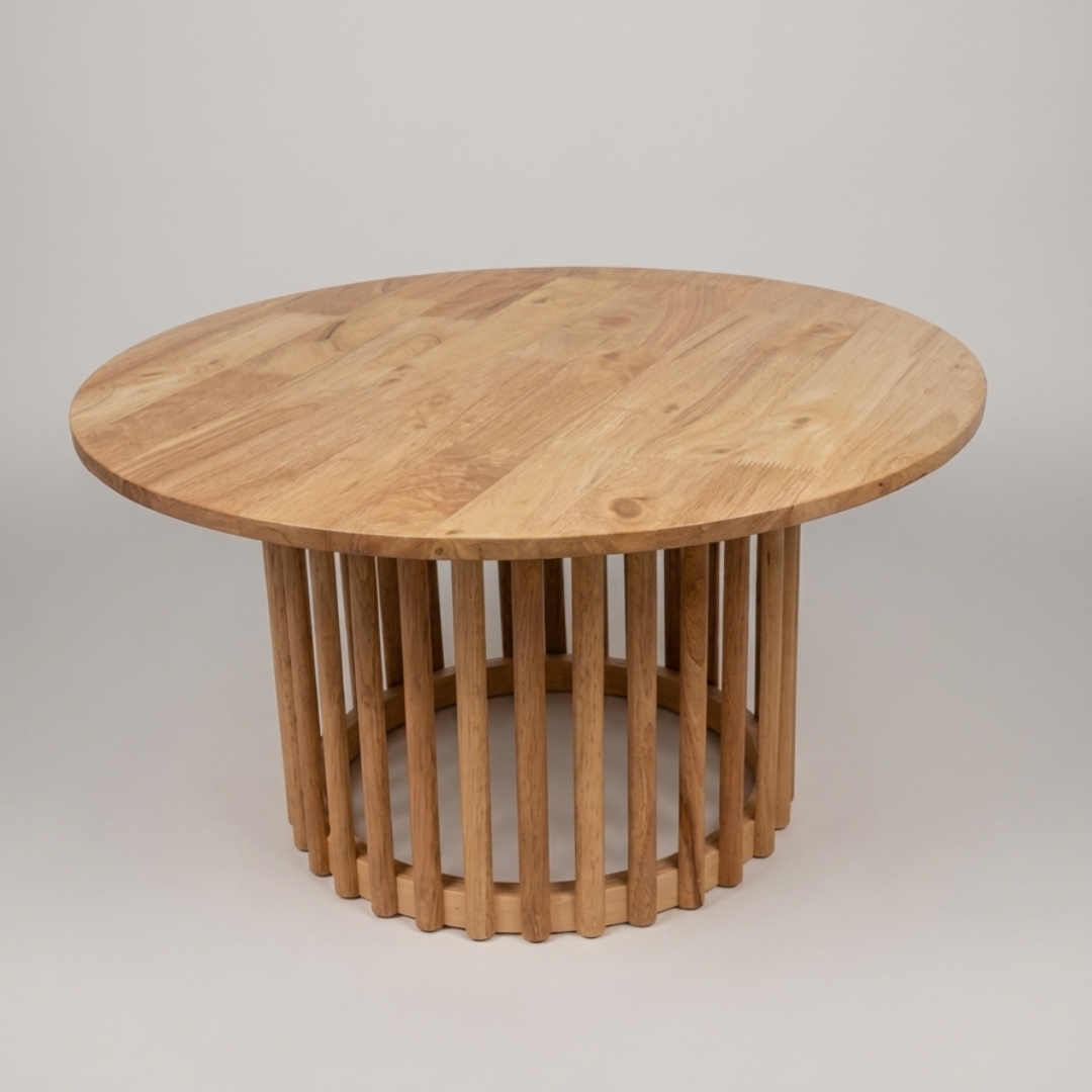 Memperkenalkan Siri Meja Sarang Bulat NIKO yang diperbuat daripada kayu padu sepenuhnya. Hadir dengan meja kopi besar dan meja sisi kecil yang dijual berasingan untuk padanan yang lebih fleksibel. Rekaan meja bulat bersama tapak berpalang bulat menampilkan gaya Japandi yang hangat dan moden. Sempurna sebagai pelengkap ruang tamu anda.