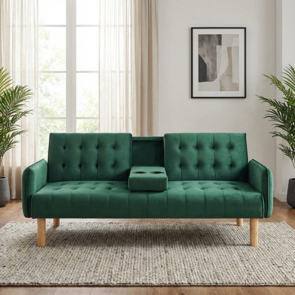 JULIAN 3 Seater Sofa Bed With Cup Holder-Green