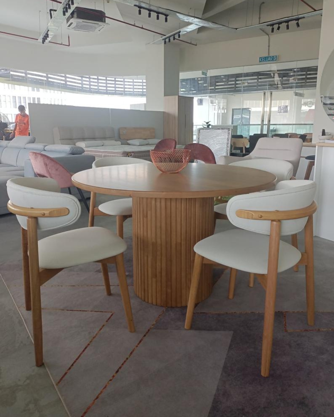 Tingkatkan ruang makan anda dengan Set Meja Makan Bulat 4-Kerusi NISA, diperbuat sepenuhnya daripada kayu getah pepejal untuk ketahanan dan keindahan semula jadi. Set ini merangkumi meja bulat dengan asas beralur yang elegan dan empat kerusi belakang melengkung yang dilapisi fabrik mudah dicuci – sesuai untuk kegunaan harian dan penyelenggaraan mudah. Menggabungkan ketukangan klasik dengan keselesaan moden, set NISA membawa kehangatan, fungsi, dan sentuhan sofistikated ke ruang makan anda.