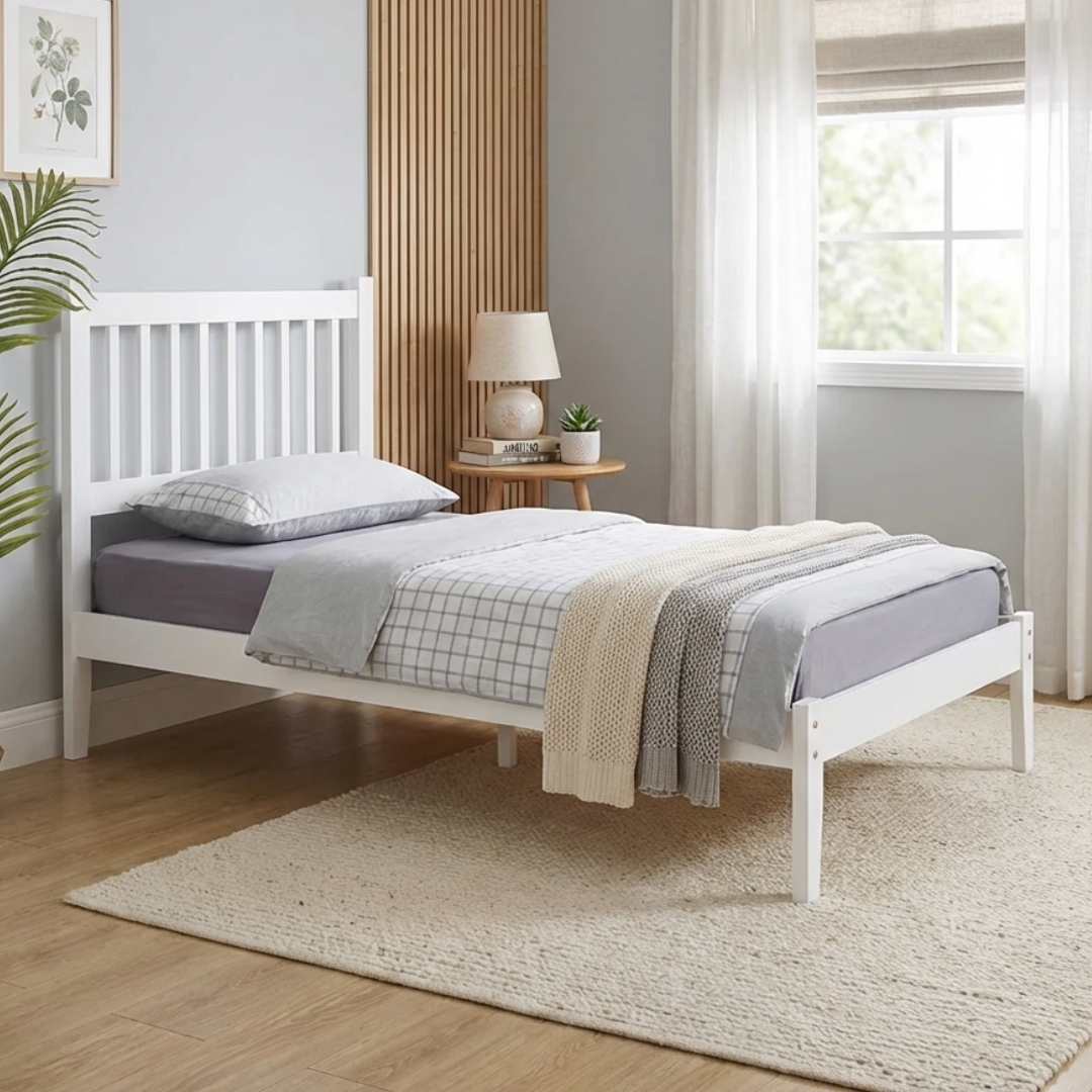 THOMAS Single Size Solid Wood Bed Frame-White