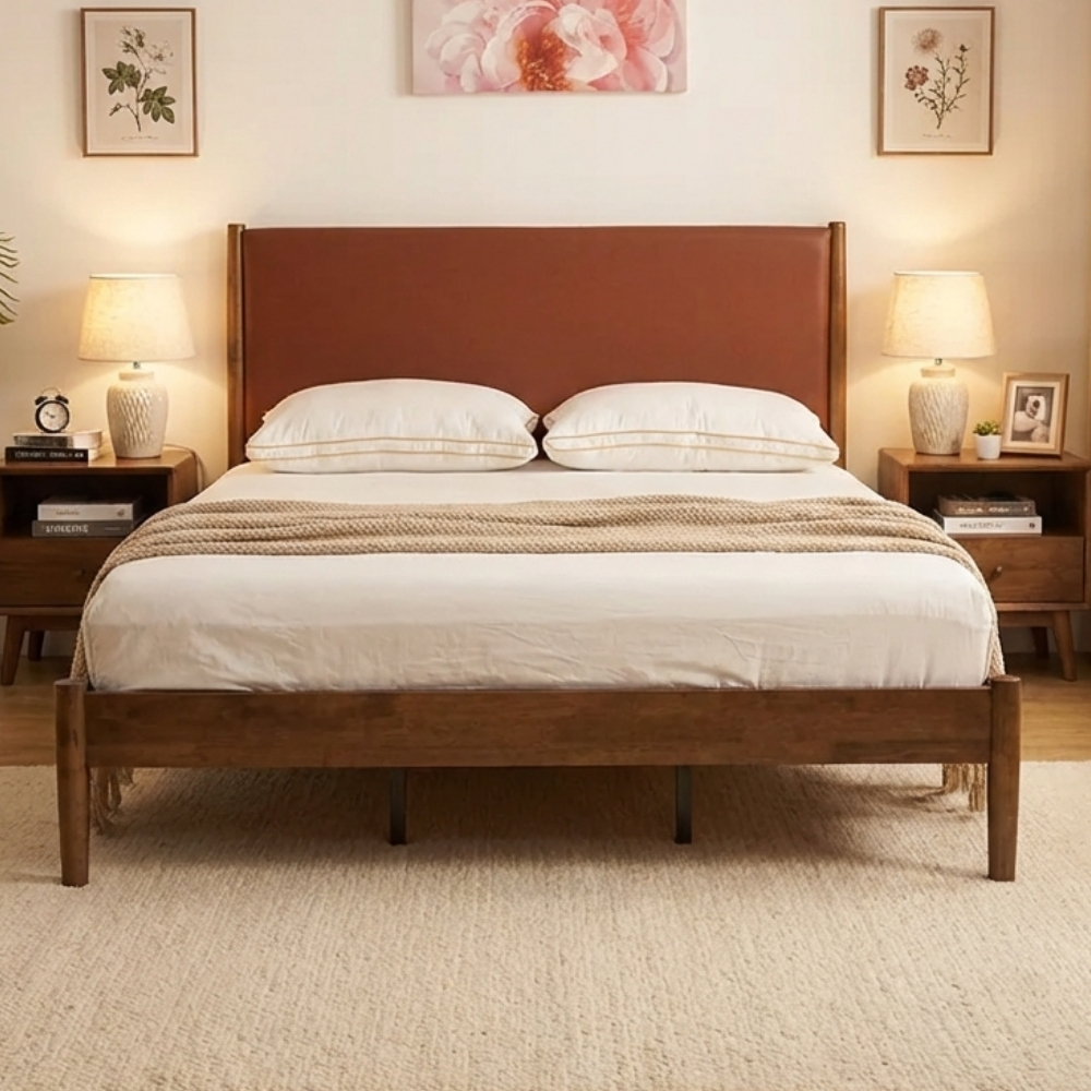 - OKAWA Queen Size Solid Wood Bed-Walnut