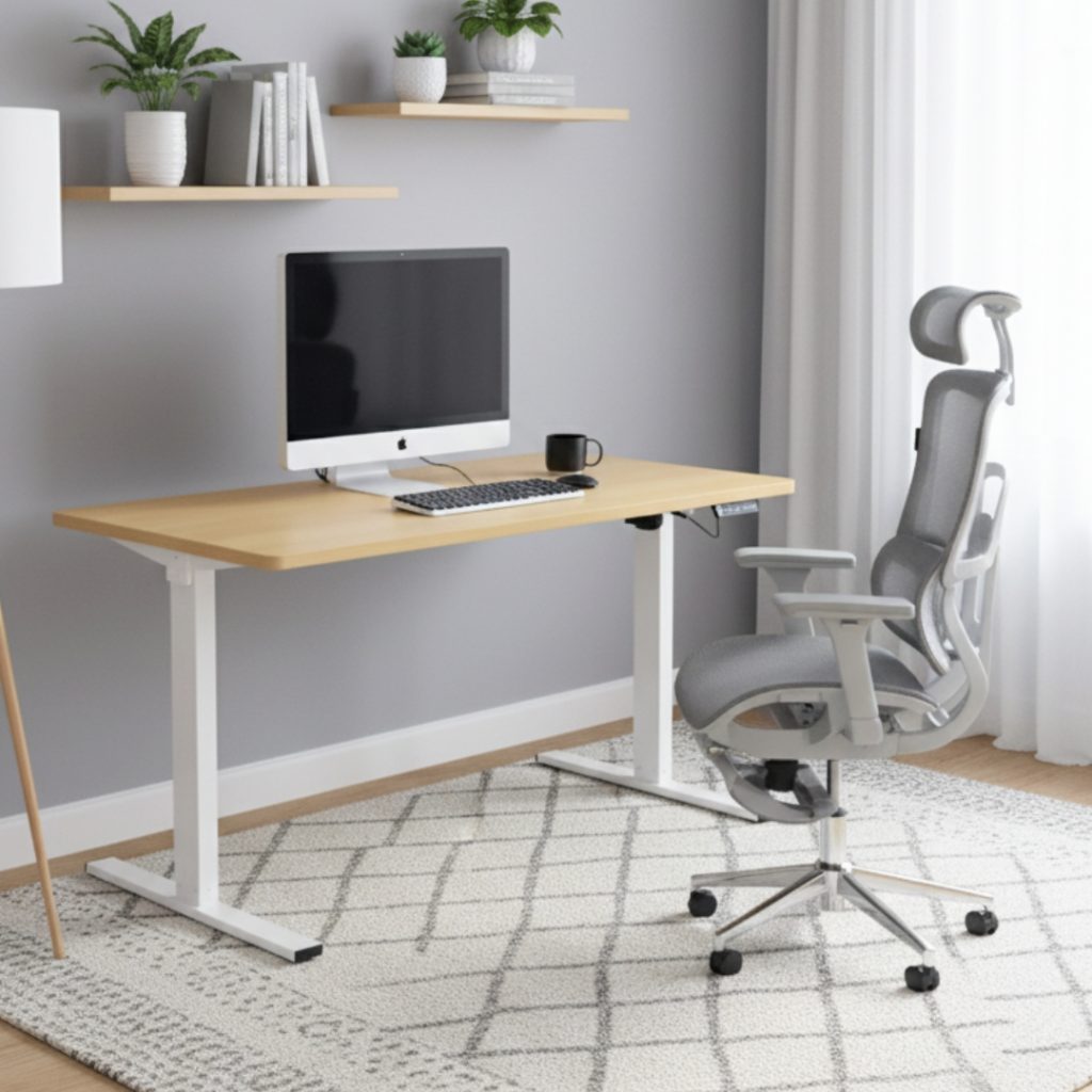 This all-in-one set includes an electric standing desk and an ergonomic office chair with a footrest, designed for comfort and productivity. Whether you’re working from home or in the office, stay active, focused, and comfortable all day.