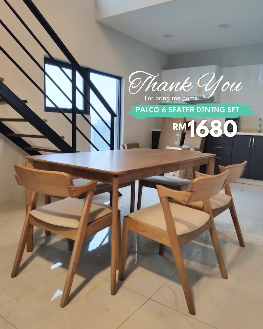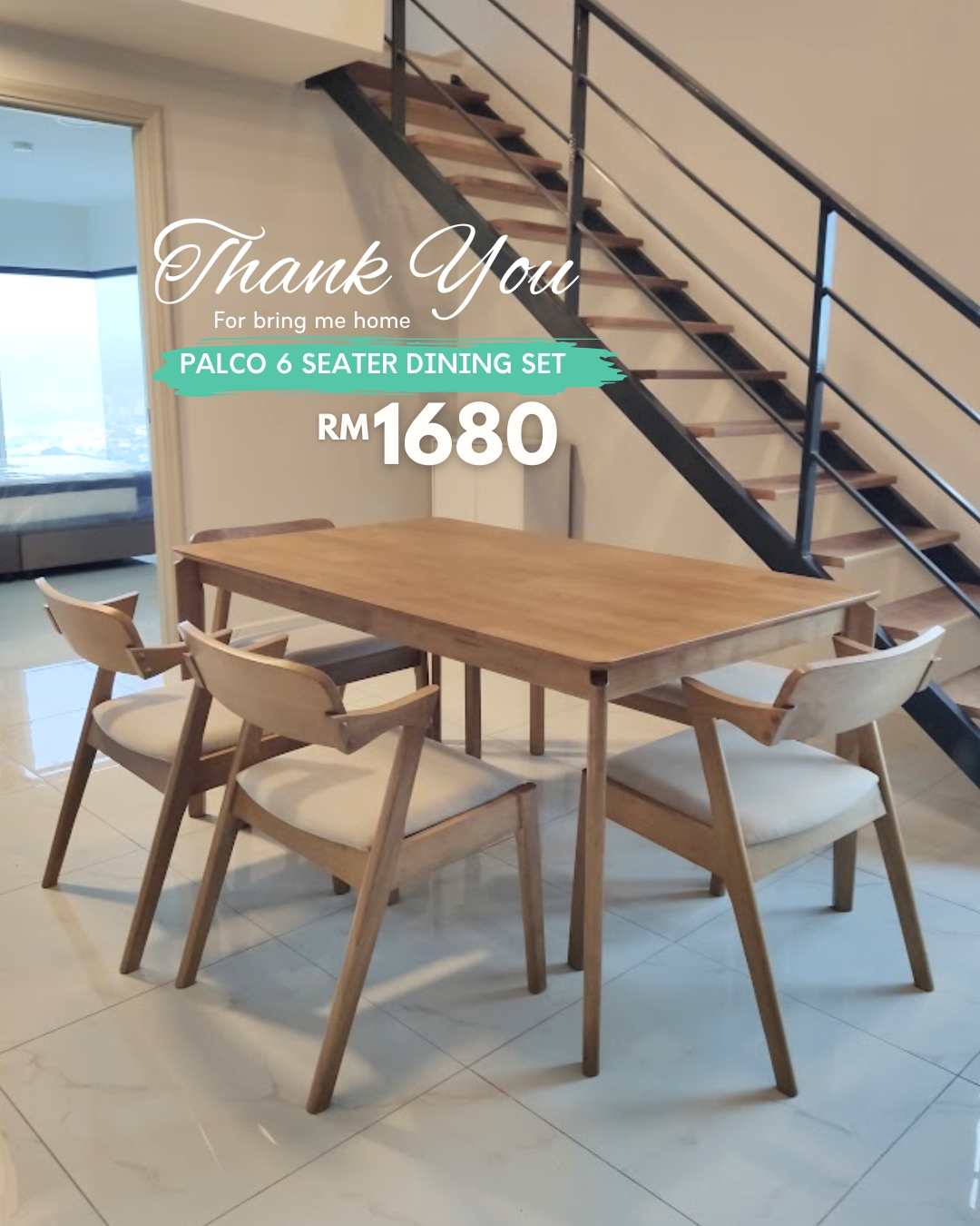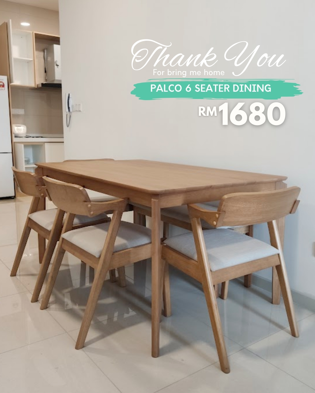 Set Meja Makan 6 Tempat Duduk PALCO diperbuat sepenuhnya daripada kayu getah padu yang tahan lama. Didatangkan dengan 4 kerusi dan 1 bangku, ia memberi fleksibiliti dalam susunan tempat duduk. Kusyen fabrik yang selesa serta sandaran kayu melengkung menambah keselesaan ergonomik—sempurna untuk jamuan keluarga atau bersama tetamu.