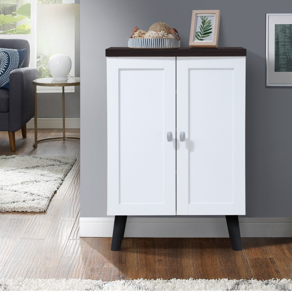 PALESA 2 Door Shoe Cabinet-White+Walnut