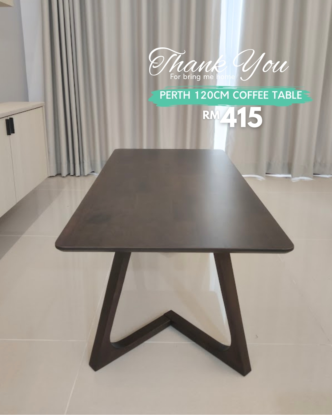 - PERTH 120cm Solid Wood Coffee Table-Walnut