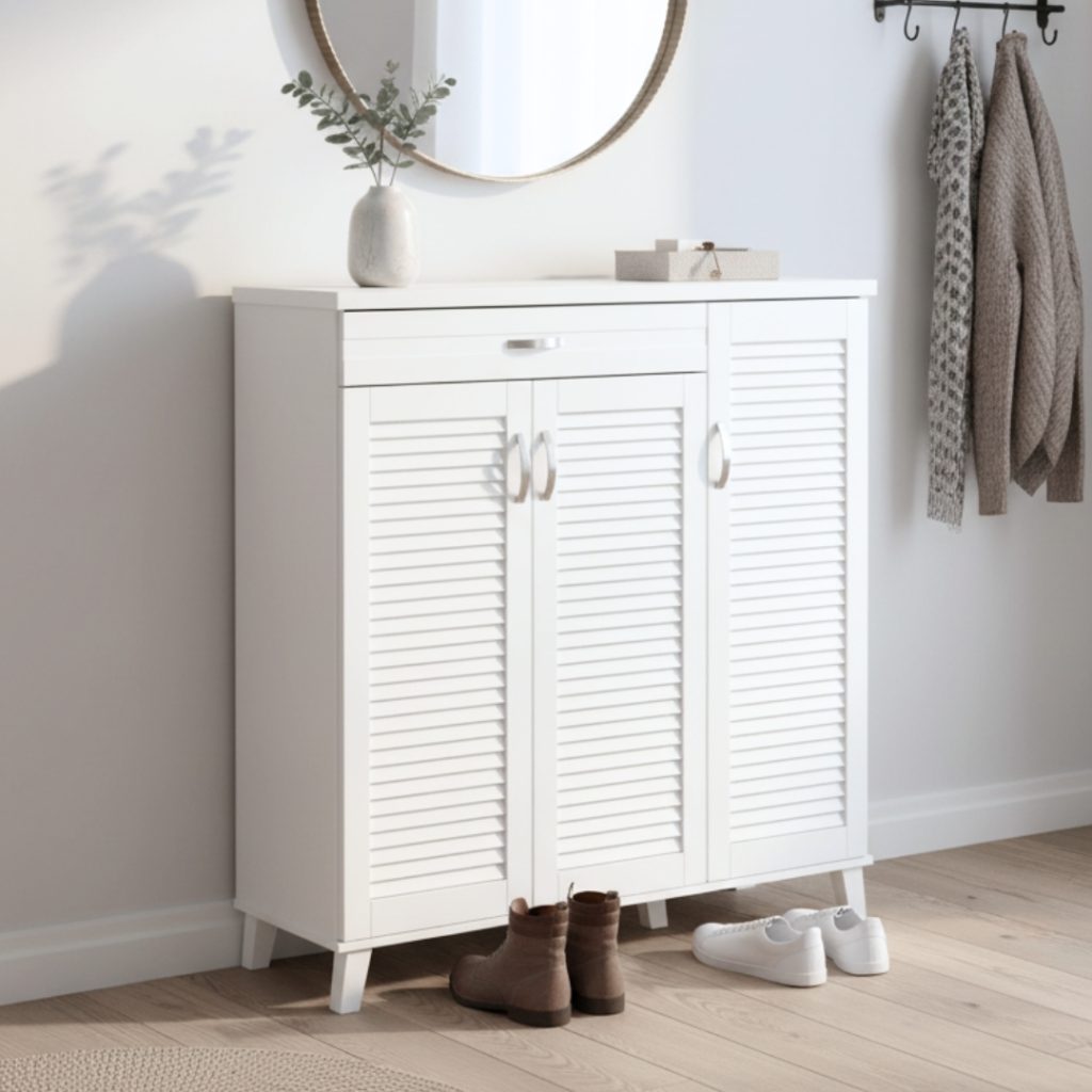 - PERUSI 3 Louver Door Shoe Cabinet-White