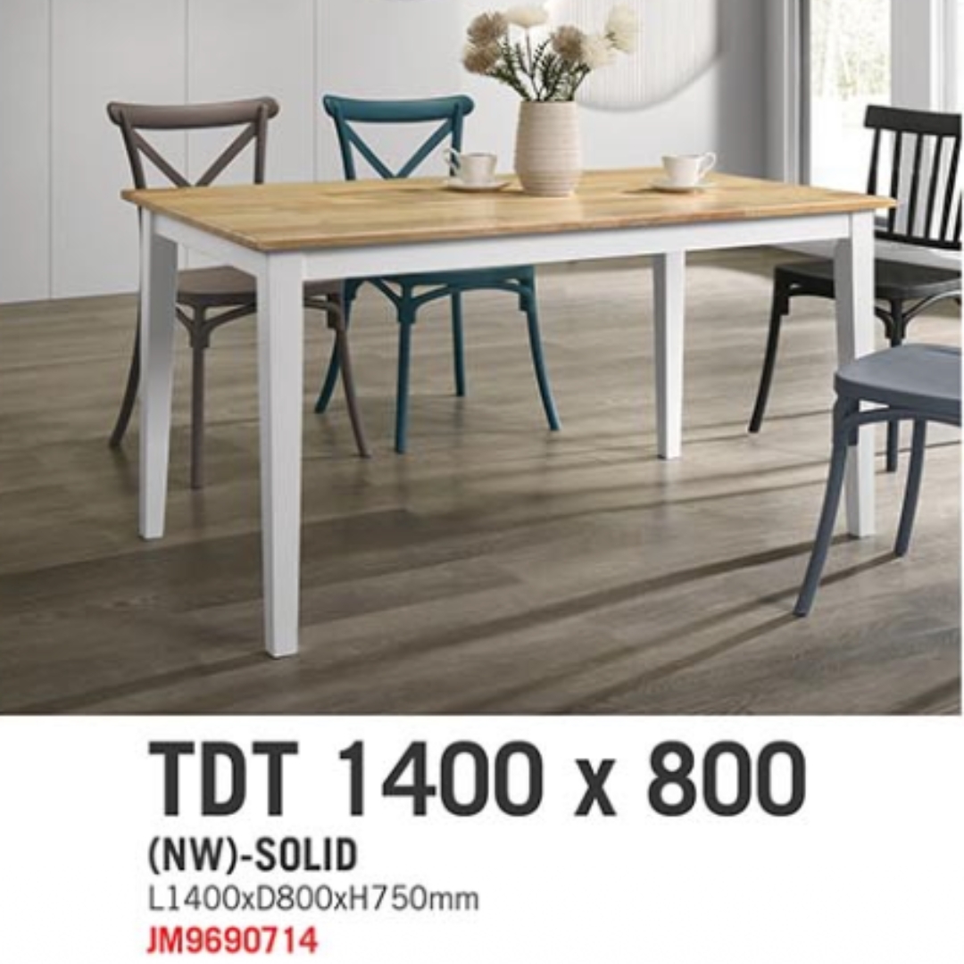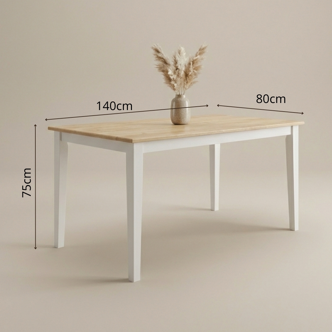 - PETRA 140cm Full Solid Dining table-Natural+White
