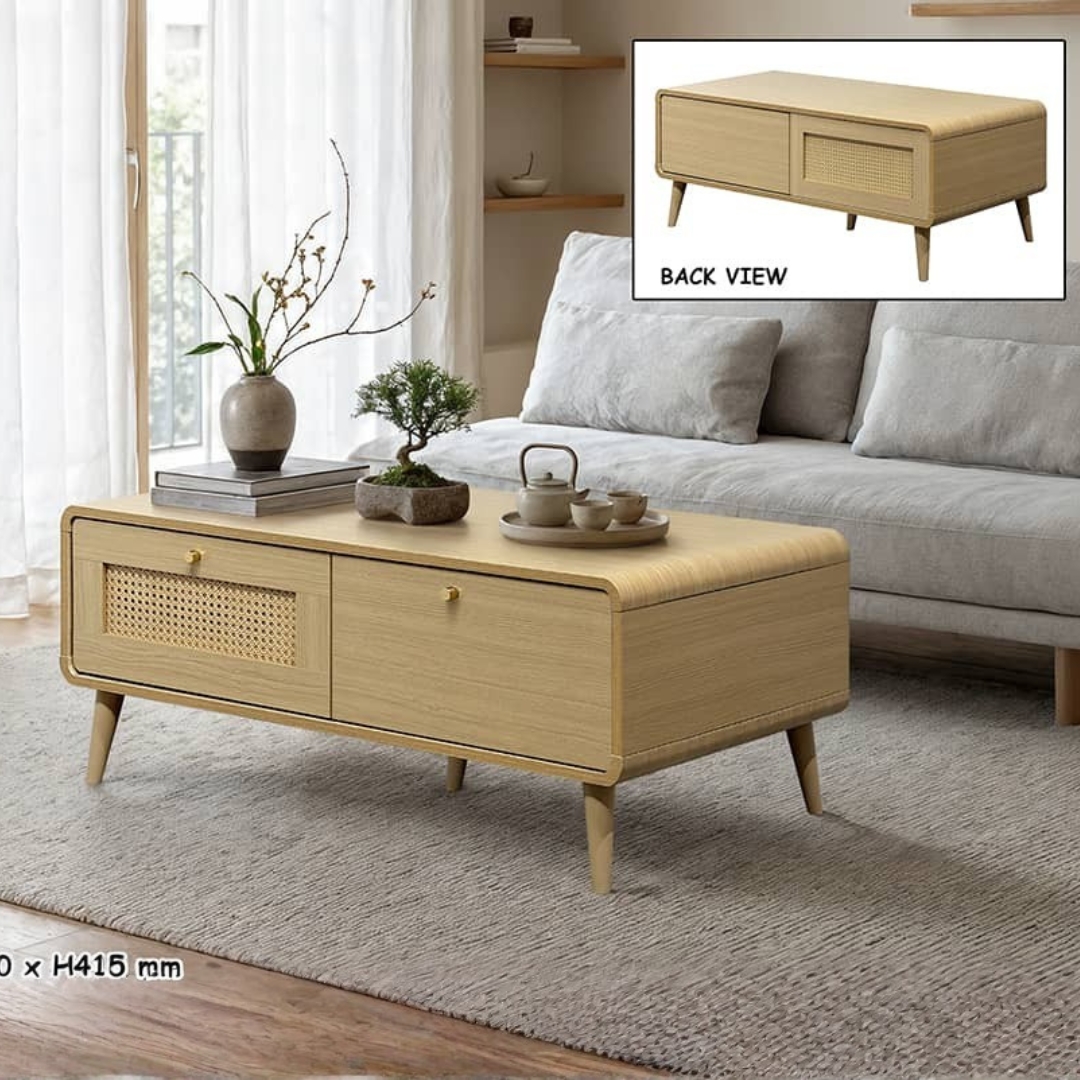 Alami ketenangan dengan Siri Ruang Tamu PODERE. Membawakan inspirasi gaya Japandi, koleksi ini menggabungkan elemen minimalis Jepun dan praktikaliti Scandinavia. Diperbuat daripada papan zarah (particle board) dengan warna kayu semula jadi, setiap unit direka dengan sudut melengkung (curved edge) untuk imej yang lebih lembut dan selamat. Penampilan uniknya diserlahkan lagi dengan panel pintu rotan sintetik, memberikan tekstur anyaman klasik yang tahan lama dan mudah dijaga. Pilihan tepat untuk kediaman yang mementingkan gaya estetik semula jadi.