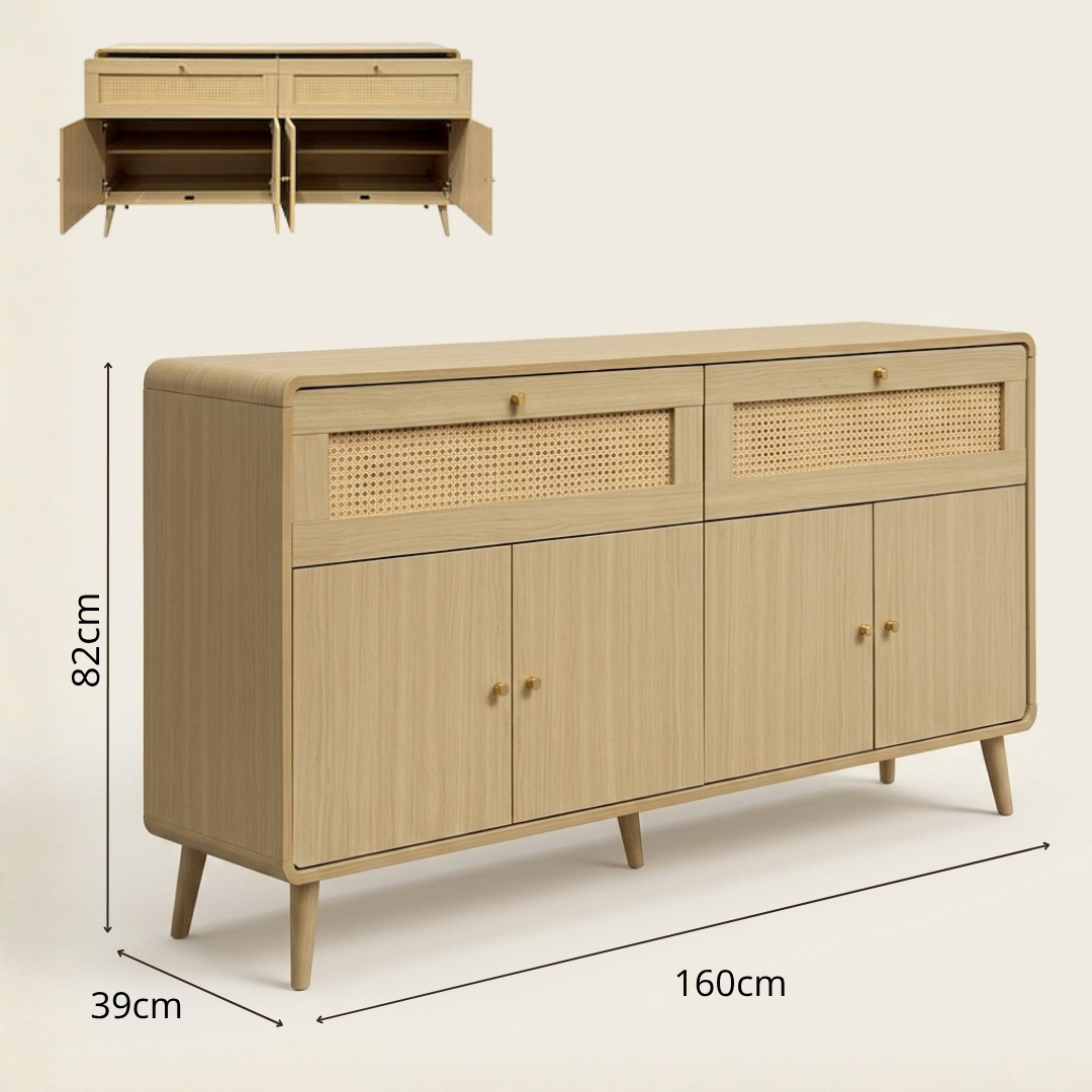 - PODERE 160cm 4 Door 2 Drawer Sideboard-Oak