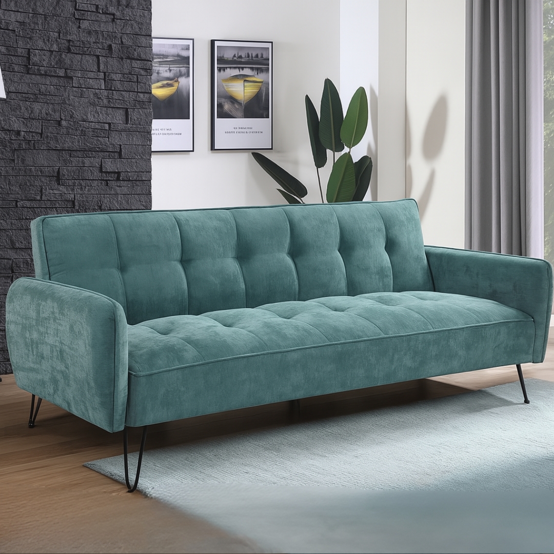 CAMELLIA Velvet Fabric Sofa Bed-Blue