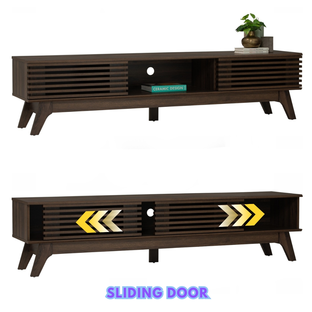 Introducing the PRADO Living Room Series – a perfect blend of style and functionality. Featuring elegant slatted wood door designs in a rich walnut color, this series brings a warm and sophisticated feel to any space. Designed with smooth sliding doors for easy access, PRADO is available in multiple options including a TV cabinet, coffee table, side table, and sideboard. Whether for storage or display, the PRADO series adds a timeless, modern touch to your living area.