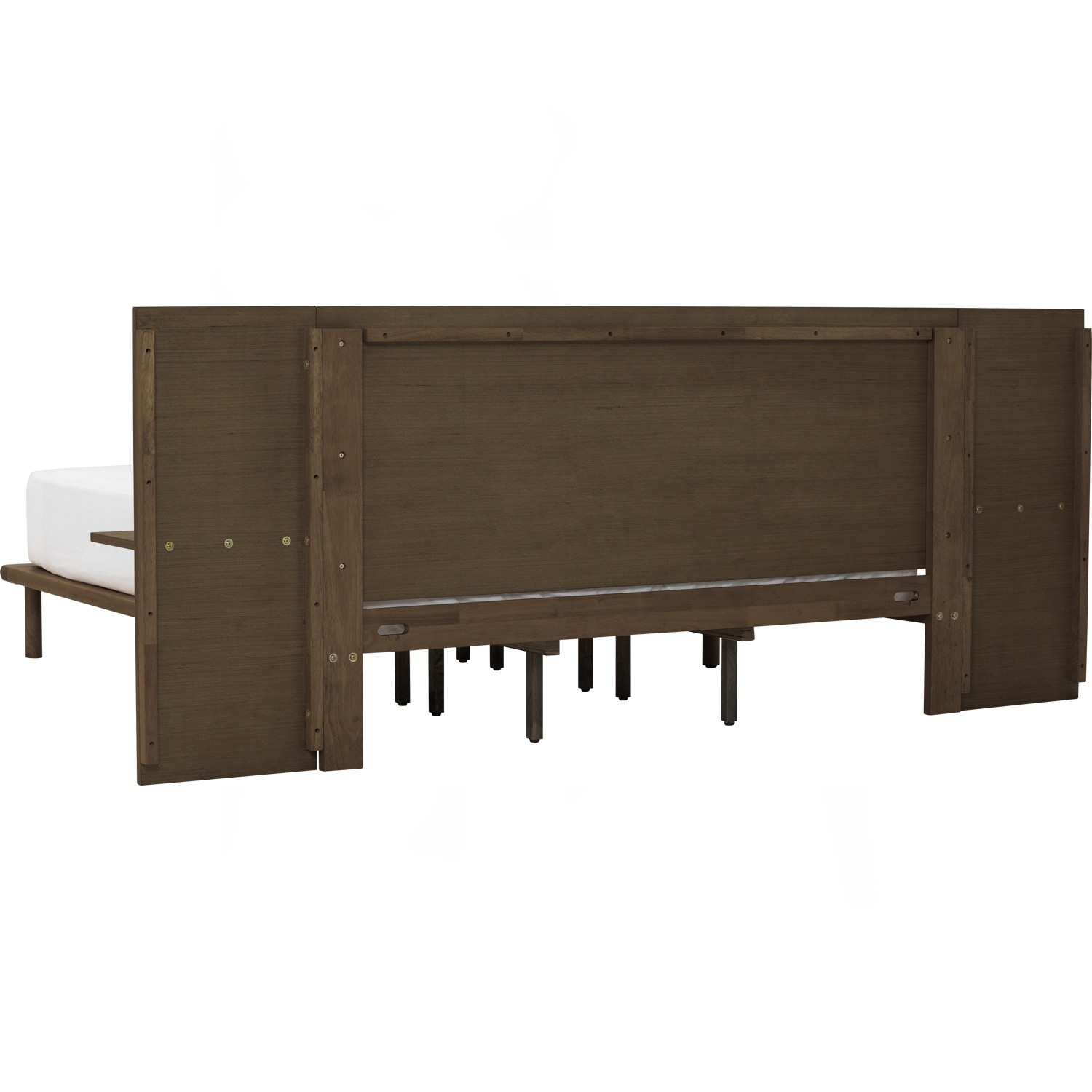 THOMAS Solid Wood Queen Size Bed Frame With Pull Out-Walnut