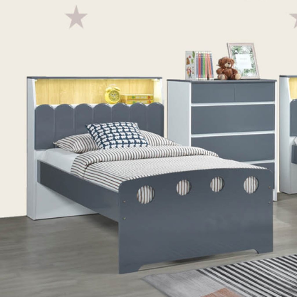 - PUFFIN Single Bed With Storage Compartment-Grey