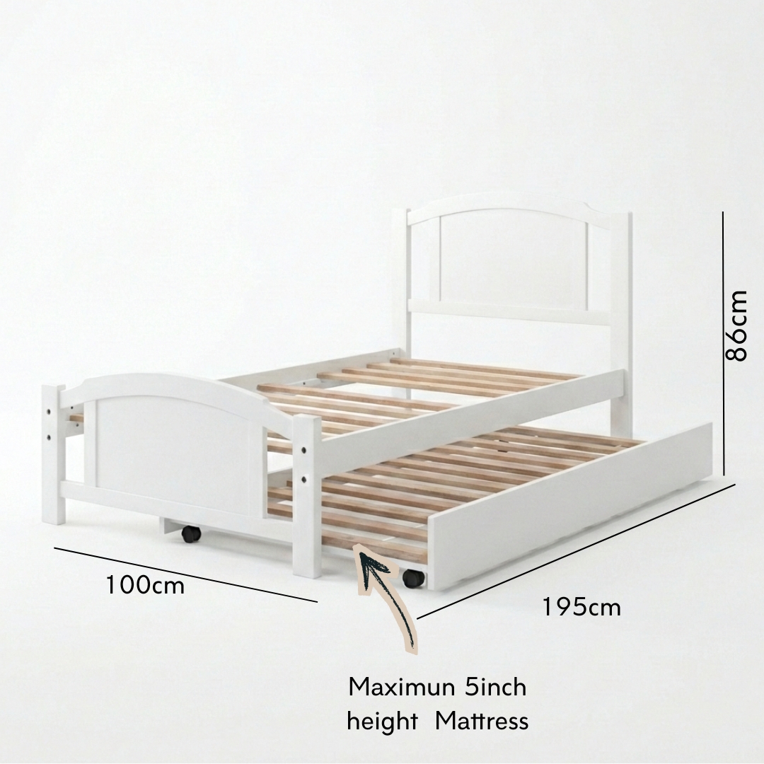 THOMAS Single Size Solid Wood Bed Frame-White