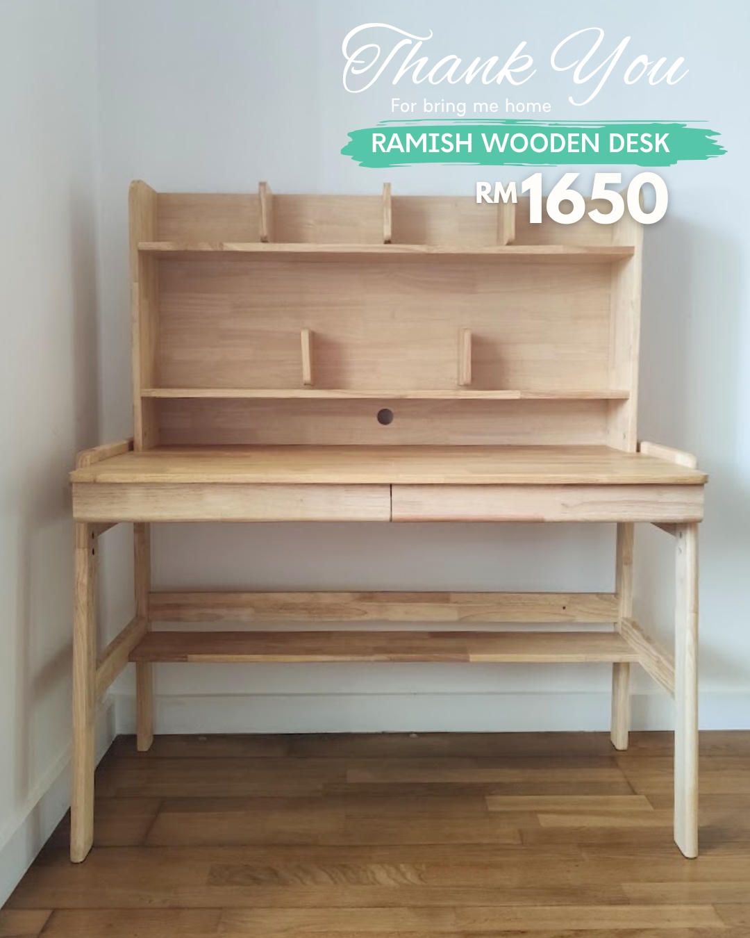 - RAMISH Solid Wood Study Desk-Natural