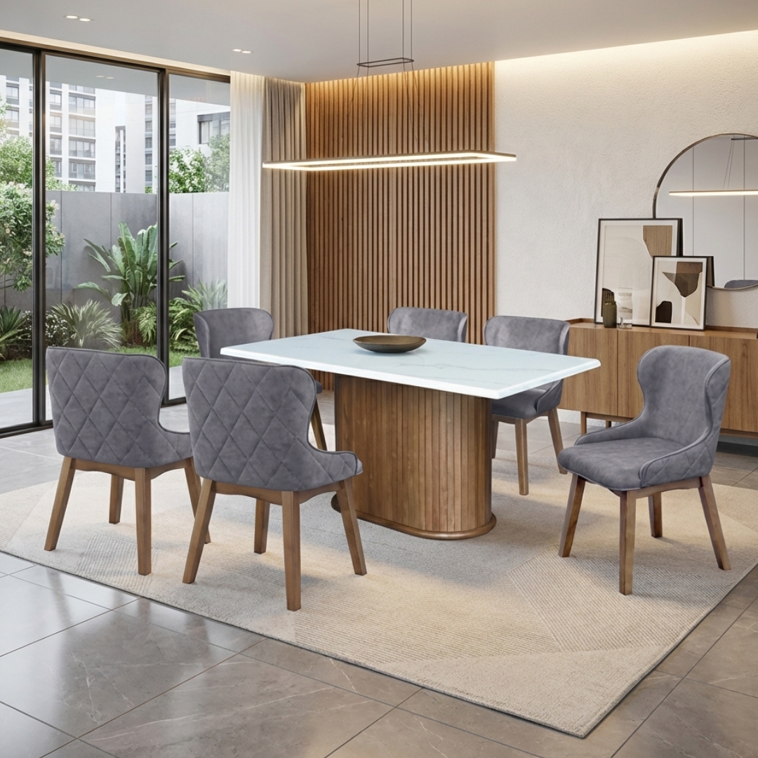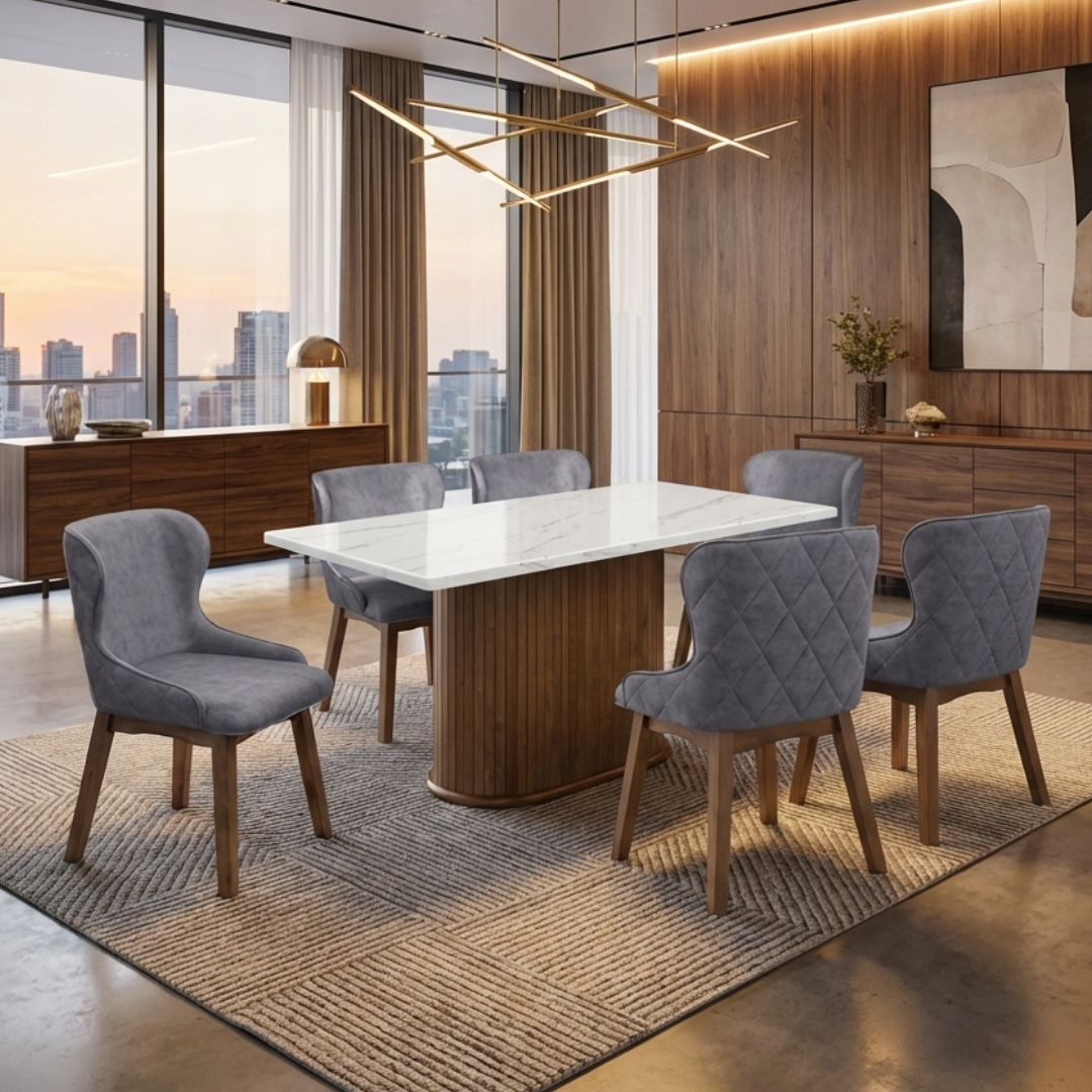 MIAMI 6 Seater Wooden Dining Set-Walnut