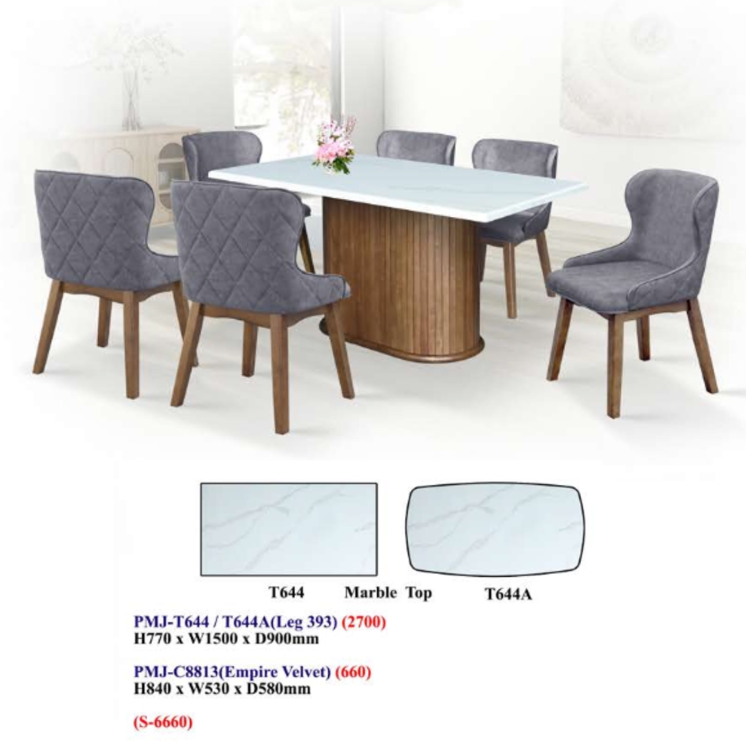 SYMPHONY 6 Seater Full Solid Wood Dining Set-Walnut