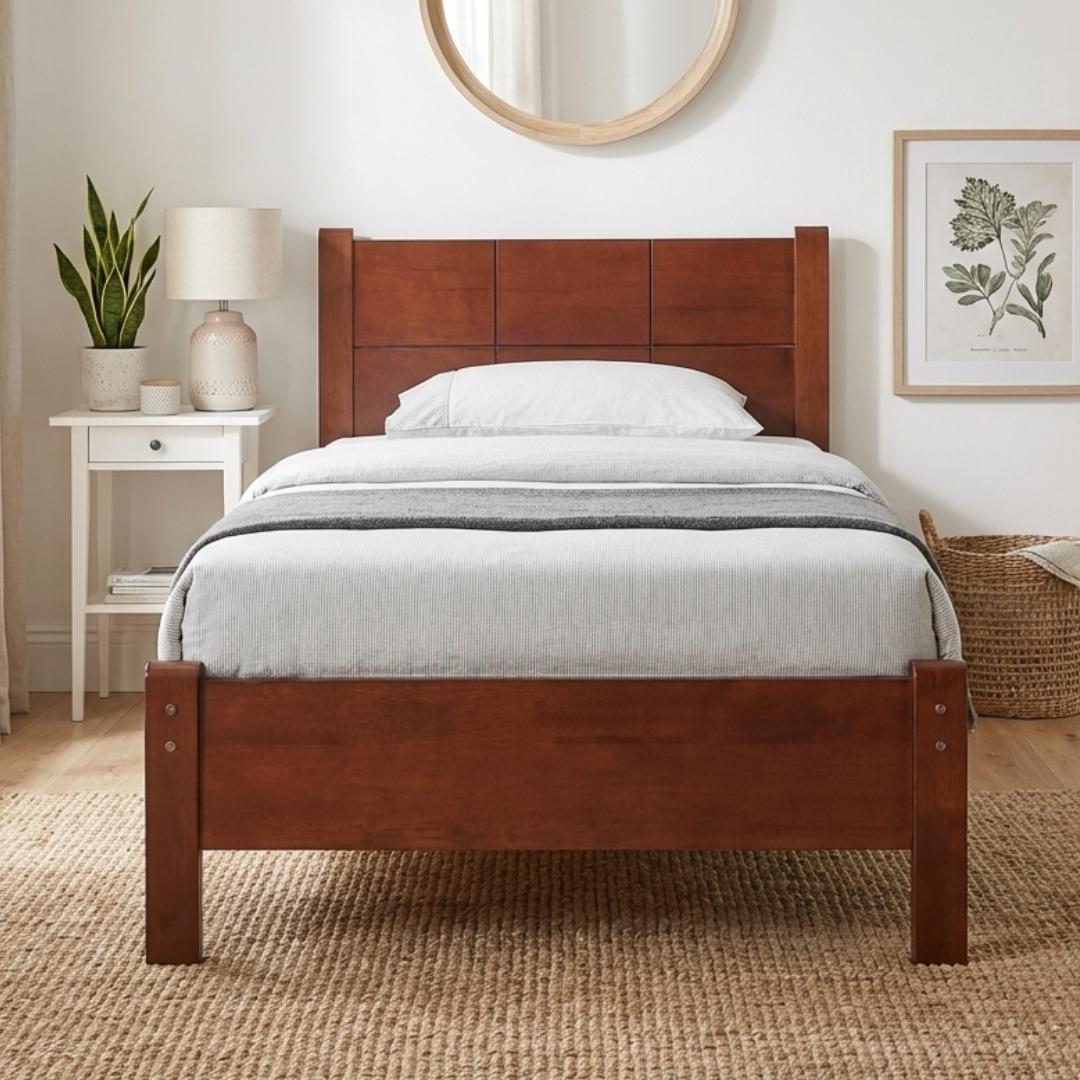 THOMAS Queen Size Wooden Bed Frame-Walnut