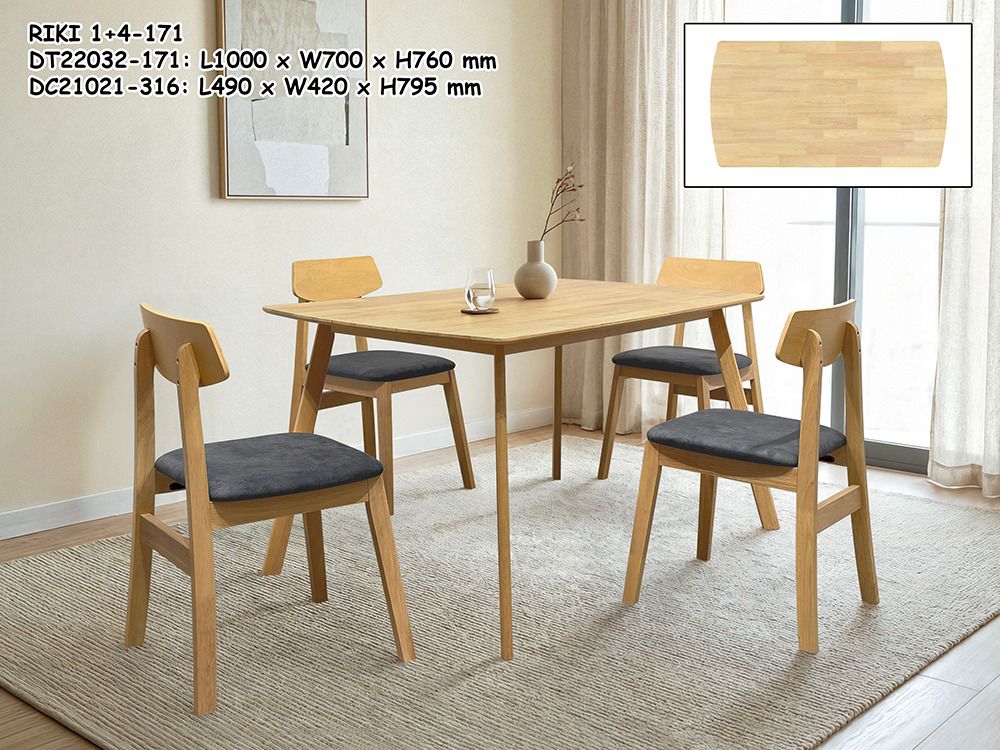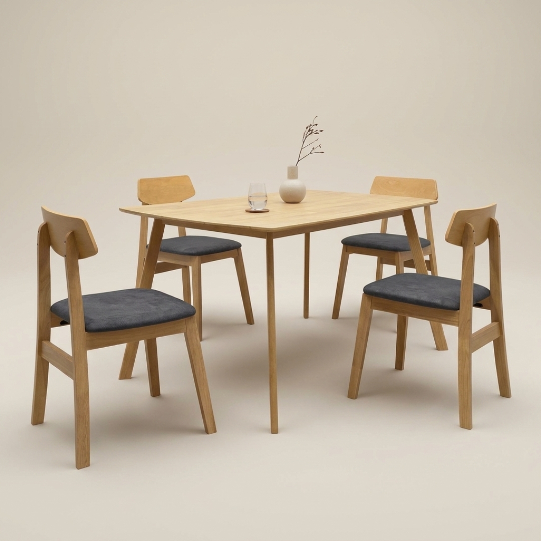 - RICKY 4 Seater Full Solid Dining Set-Natural