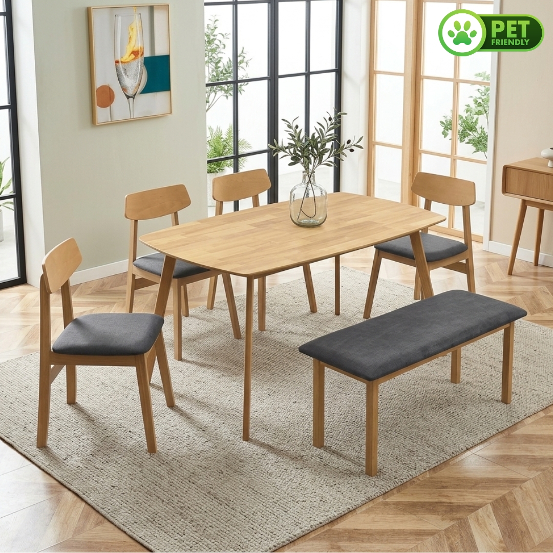 RICKY 6 Seater Full Solid Dining Set-Natural