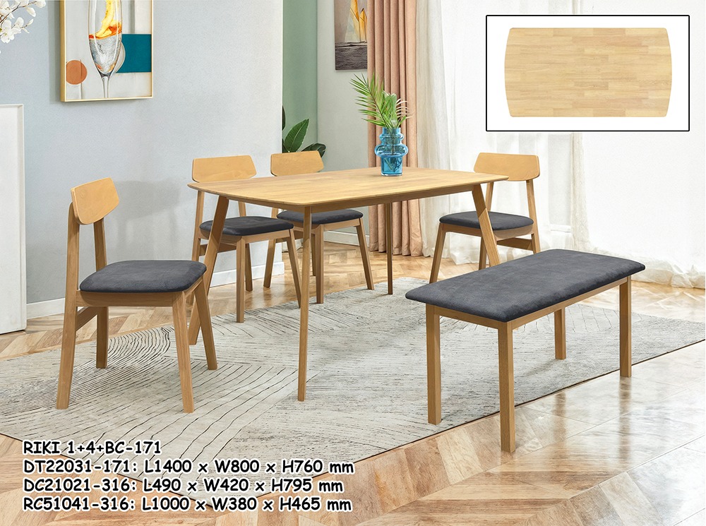 - RICKY 6 Seater Full Solid Dining Set-Natural